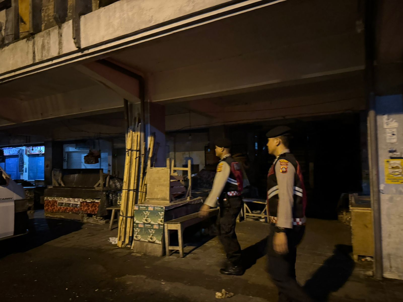 Antisipasi Gangguan Kamtibmas Pada Malam Hari, Personil Samapta Polres Bangli Lakukan Patroli Malam di Areal Pertokoan Pasar Kidul Bangli.