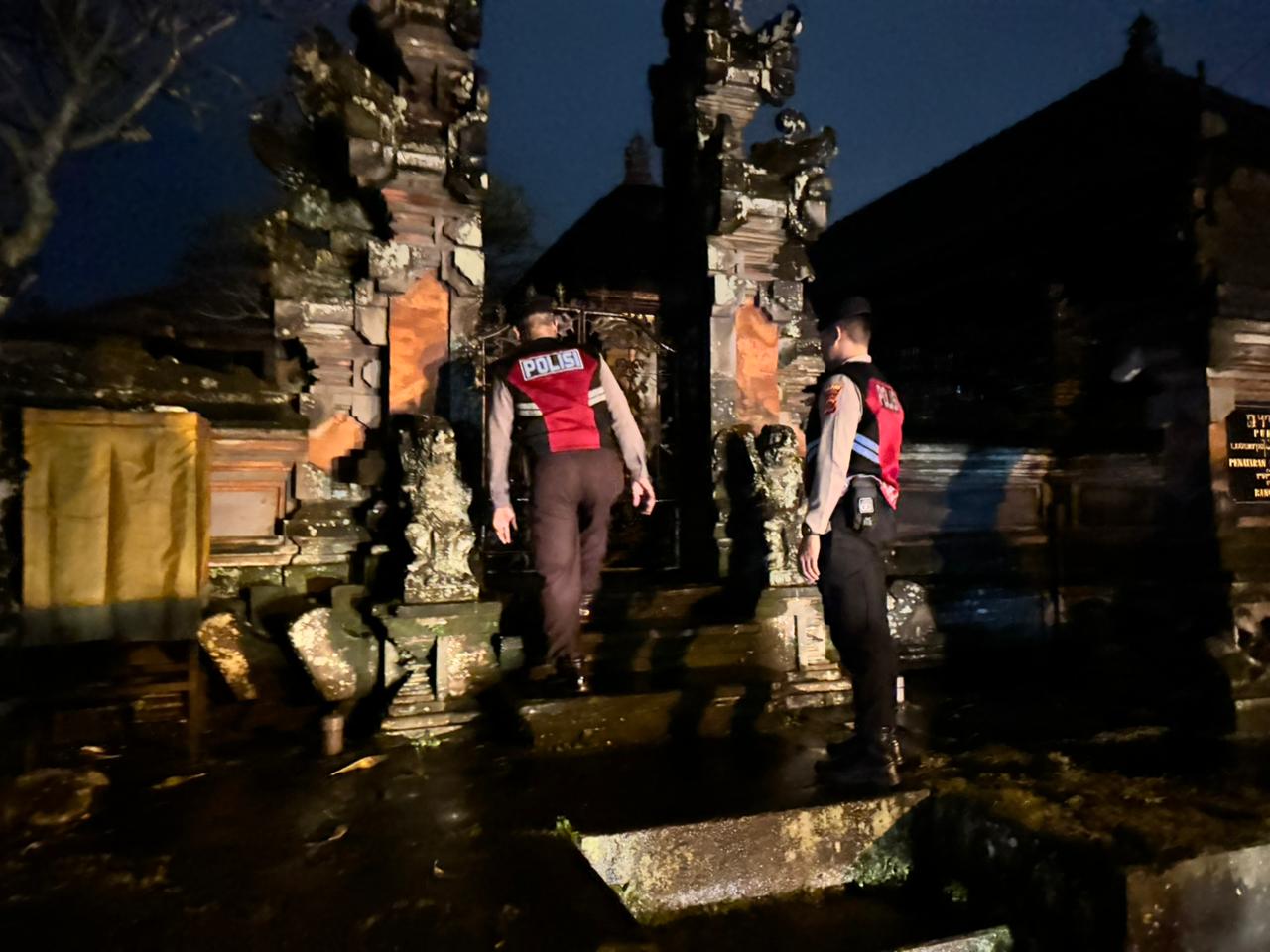 Menjaga Situasi Tetap Kondusi Pada Malam Hari, Sat Samapta Polres Bangli Sambangi Tempat Suci Pura Penataran Er Malet, Kel. Kawan, Kec. Bangli
