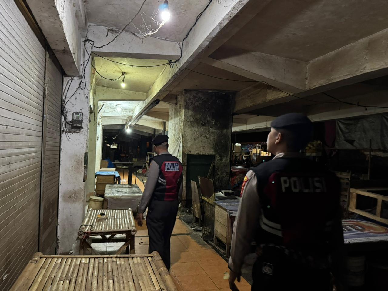 Antisipasi Gangguan Kamtibmas Pada Malam Hari, Personil Samapta Polres Bangli Lakukan Patroli Malam di Areal Pertokoan Pasar Kidul Bangli.