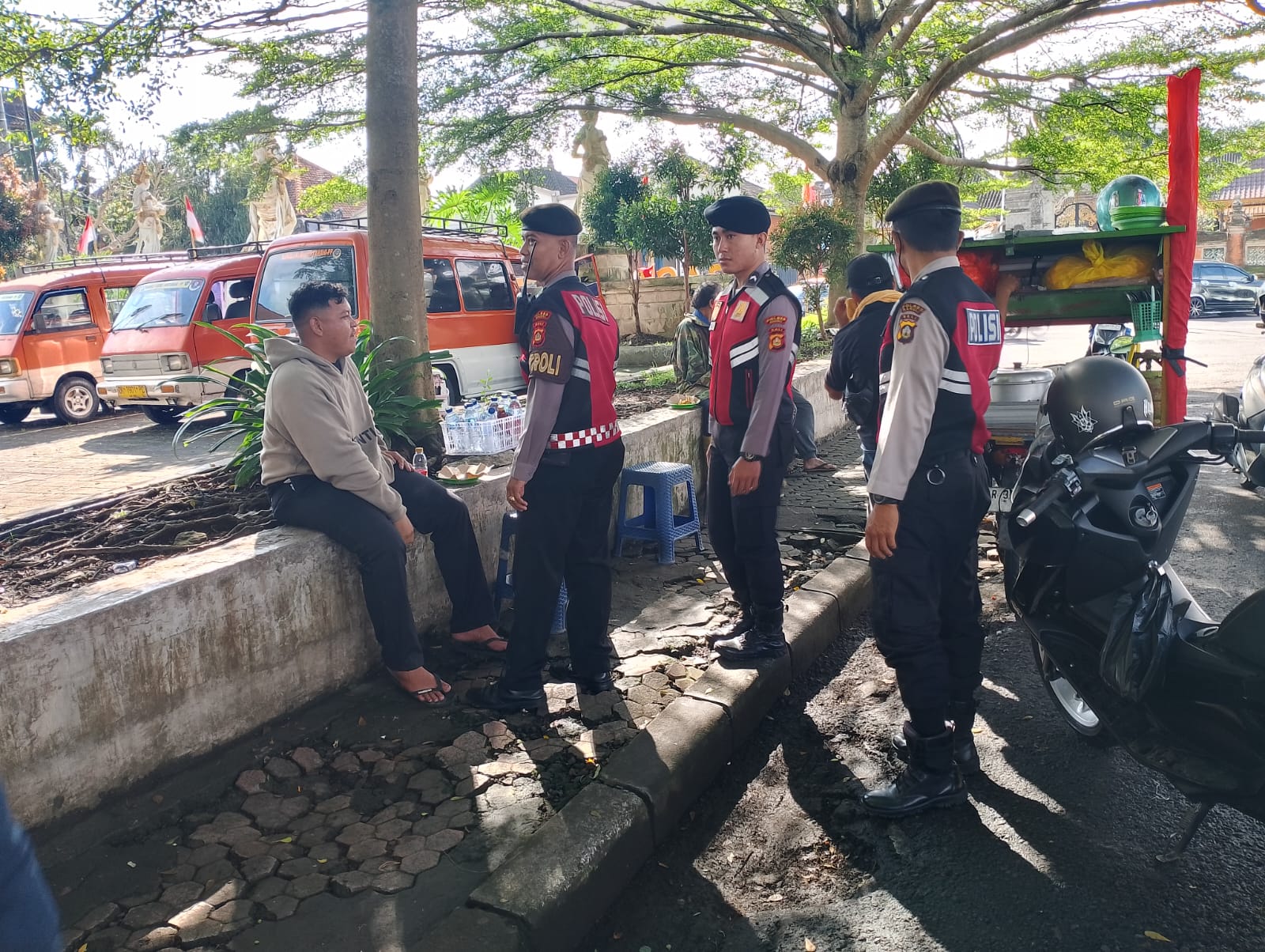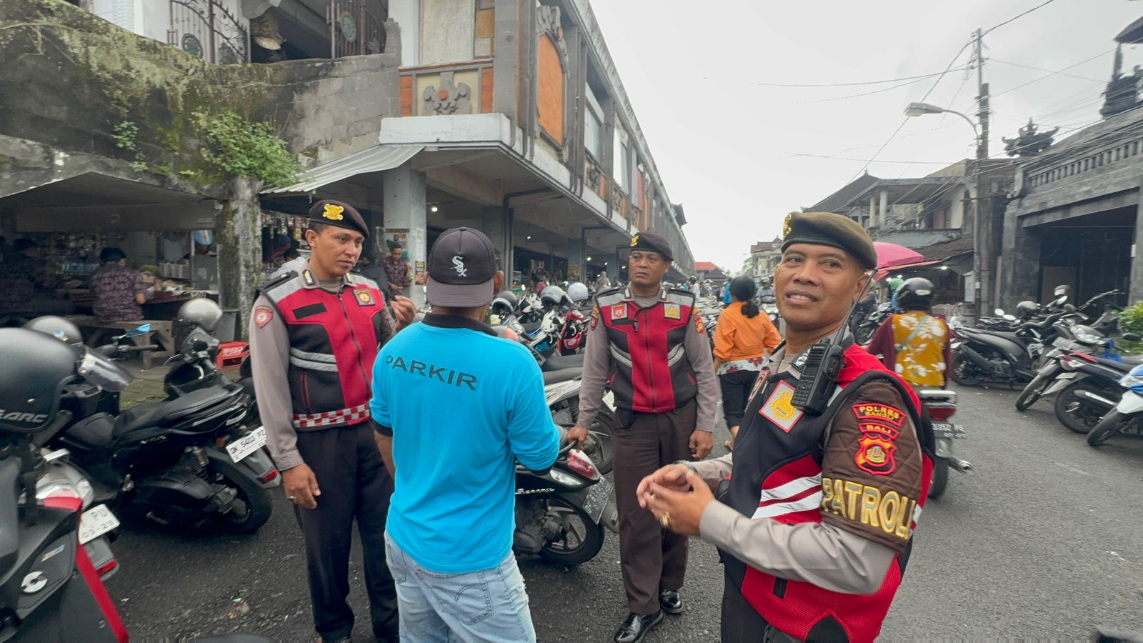 PERKECIL RUANG GERAK AKSI CURANMOR DIWILKUM BANGLI PERSONIL SAMAPTA POLRES BANGLI SAMBANGI TUKANG PARKIR