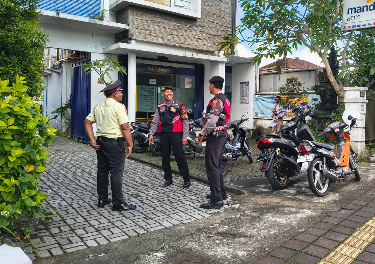 Sat Samapta Res Bangli Laksanakan Patroli Dialogis Dan Himbauan Kamtibmas Kepada Satpam Obyek Vital Bank Mandiri Cabang Bangli.
