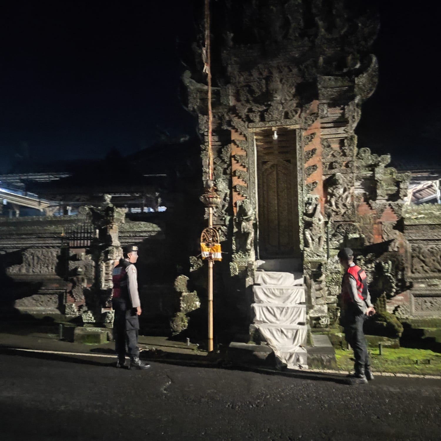 Menjaga Situasi Tetap Kondusi Pada Malam Hari, Sat Samapta Polres Bangli Sambangi Tempat Suci Pura Penataran Puseh baleagung Bangli, Kel. Kawan, Kec. Bangli