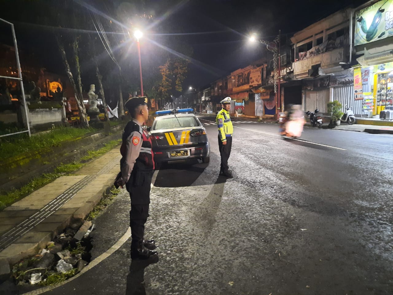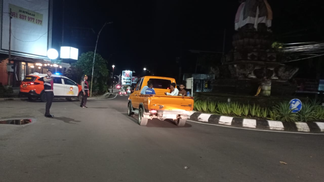 Sat Samapta Laksanakan Gatur dan Pergelaran Blue Light Randis R4 di Pusat Keramaian Malam Di Kota Bangli Demi Kenyamanan Dan Kelancaran Arus Lalu lintas Pada Malam.