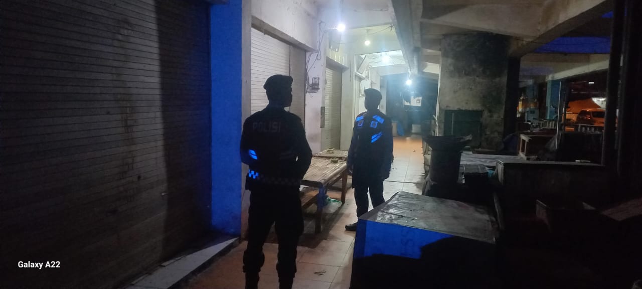 Antisipasi Gangguan Kamtibmas Pada Malam Hari, Personil Samapta Polres Bangli Lakukan Patroli Malam di Areal Pertokoan Pasar Kidul Bangli.