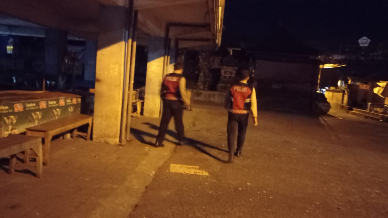 Antisipasi Gangguan Kamtibmas Pada Malam Hari, Personil Samapta Polres Bangli Lakukan Patroli Malam di Areal Pertokoan Pasar Kidul Bangli.