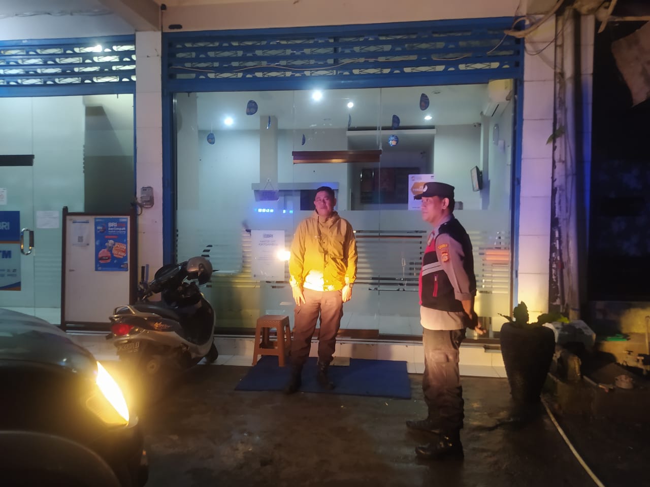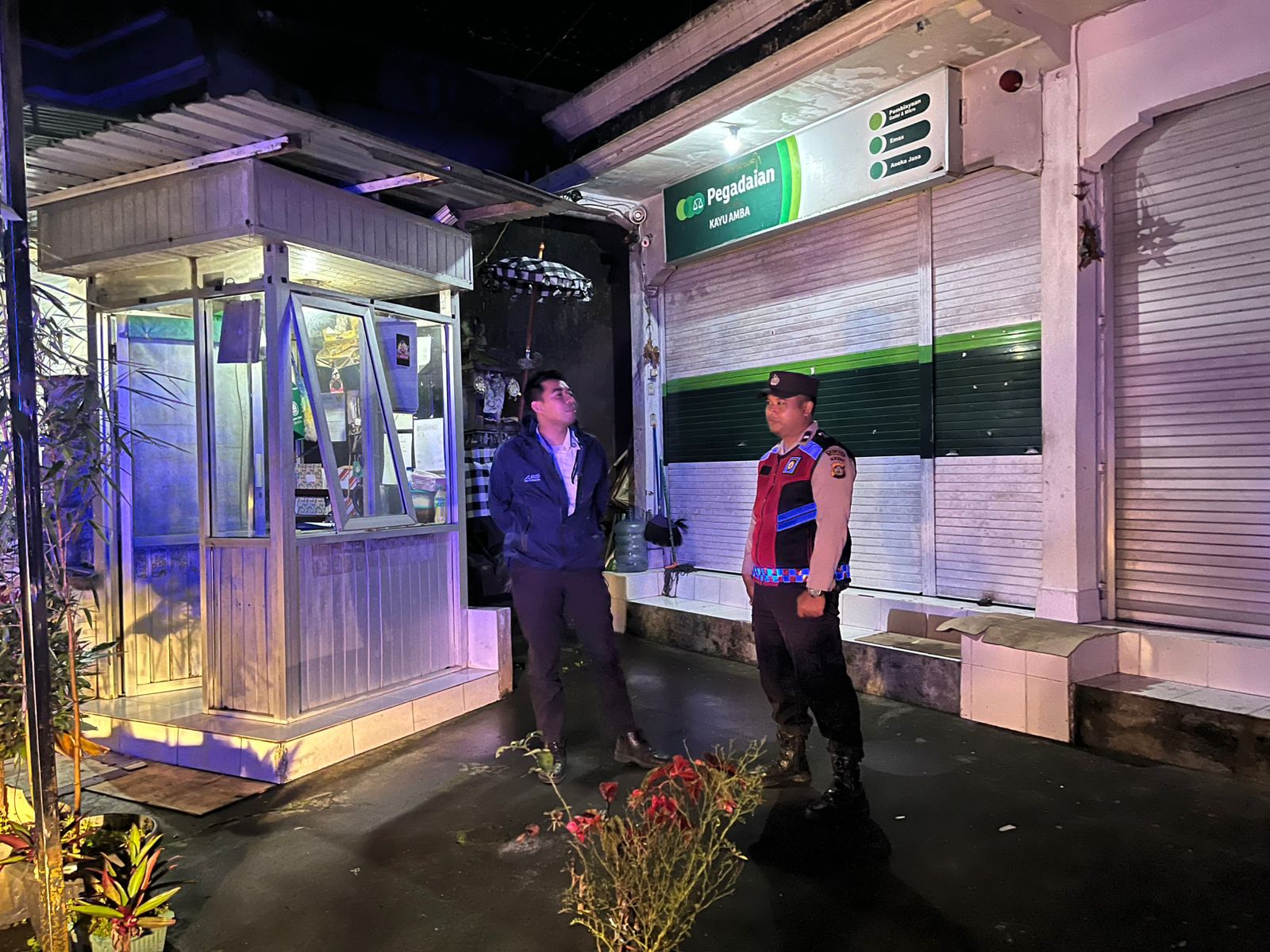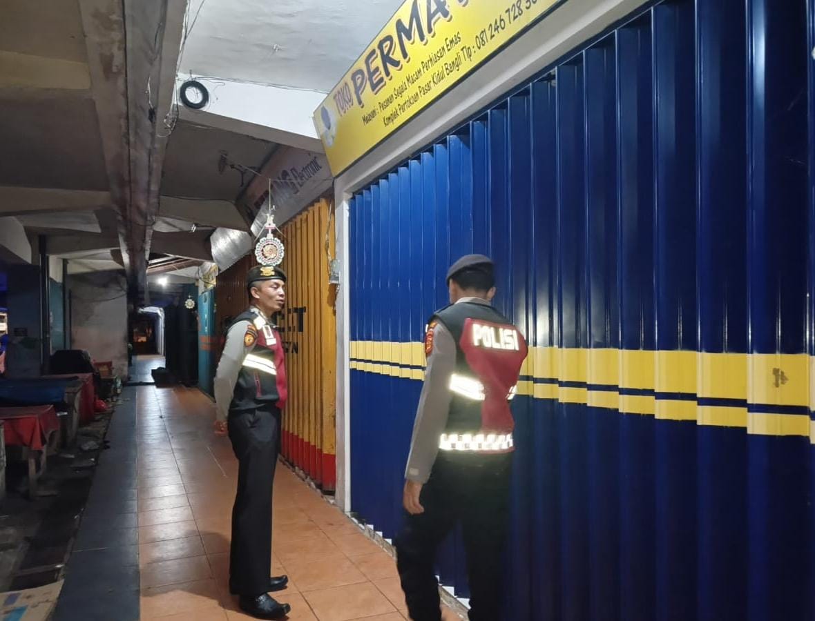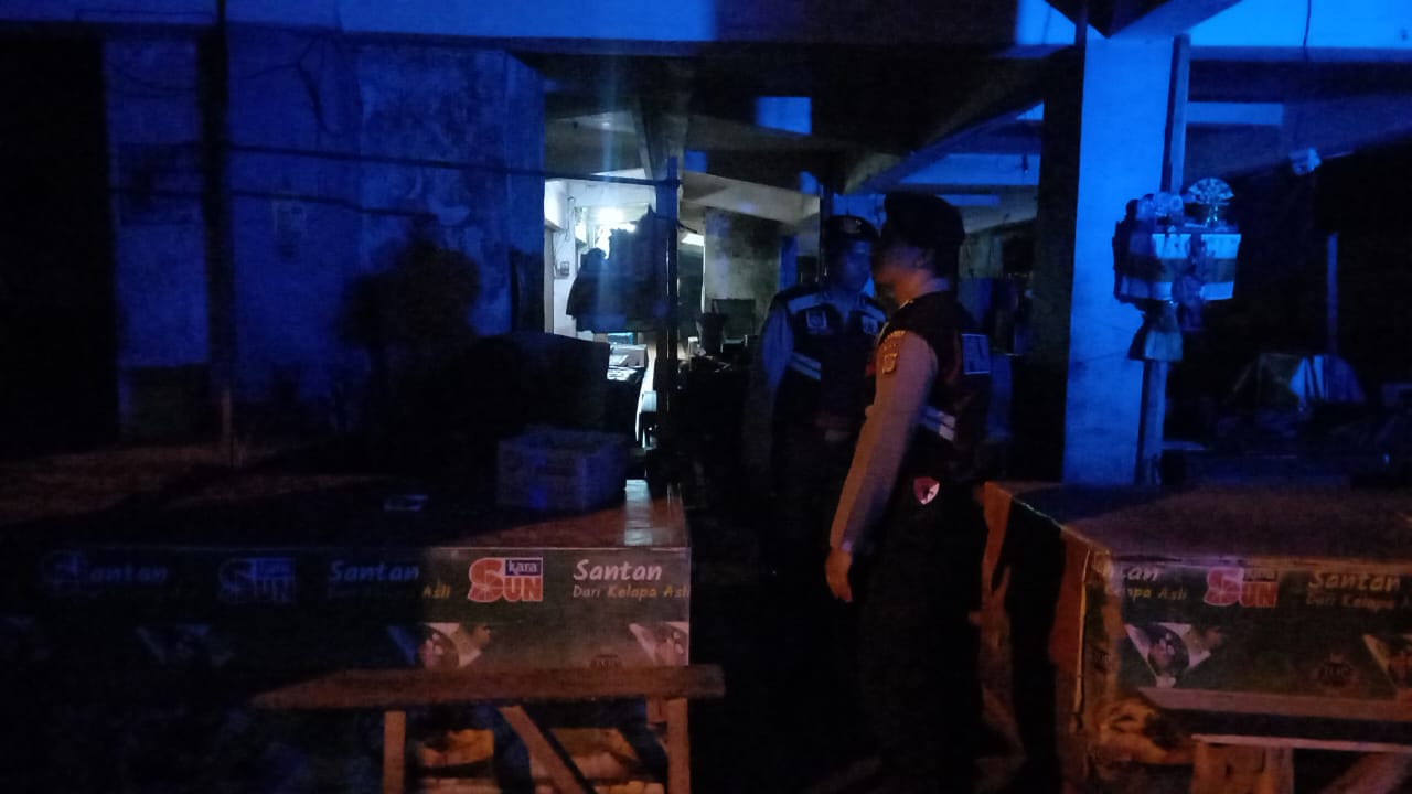 Antisipasi Gangguan Kamtibmas Pada Malam Hari, Personil Samapta Polres Bangli Lakukan Patroli Malam di Areal Pertokoan Pasar Kidul Bangli.