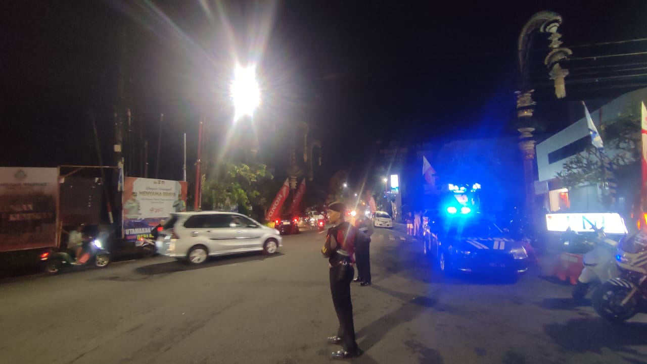 Sat Samapta Laksanakan Gatur dan Pergelaran Blue Light Randis R4 di Pusat Keramaian Malam Di Kota Bangli Demi Kenyamanan Dan Kelancaran Arus Lalu lintas Pada Malam.