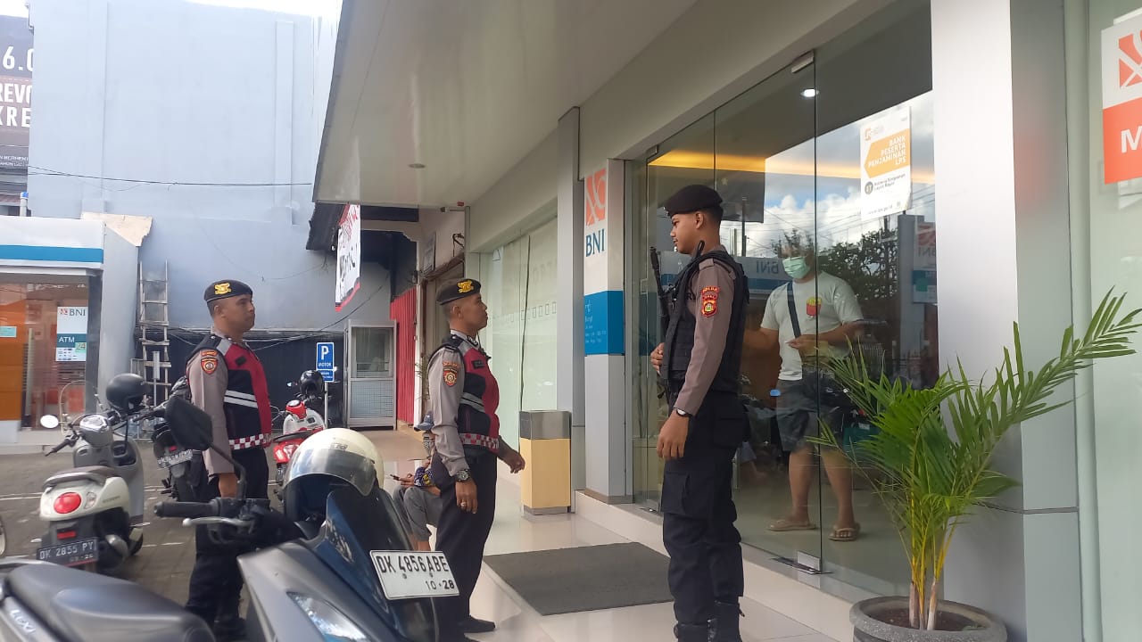 Sat Samapta Res Bangli Laksanakan Patroli Dialogis Dan Himbauan Kamtibmas Kepada Satpam Obyek Vital Bank BNI Cabang Bangli.