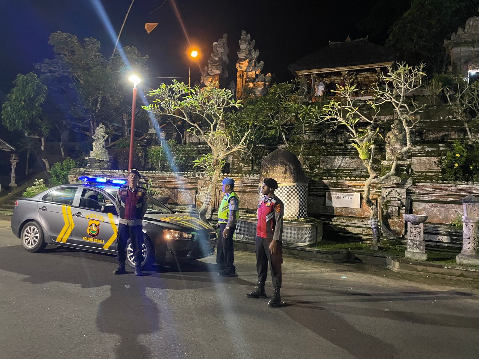 Menjaga Situasi Tetap Kondusi Pada Malam Hari, Sat Samapta Polres Bangli Sambangi Tempat Suci Pura Penataran Er Malet, Kel. Kawan, Kec. Bangli