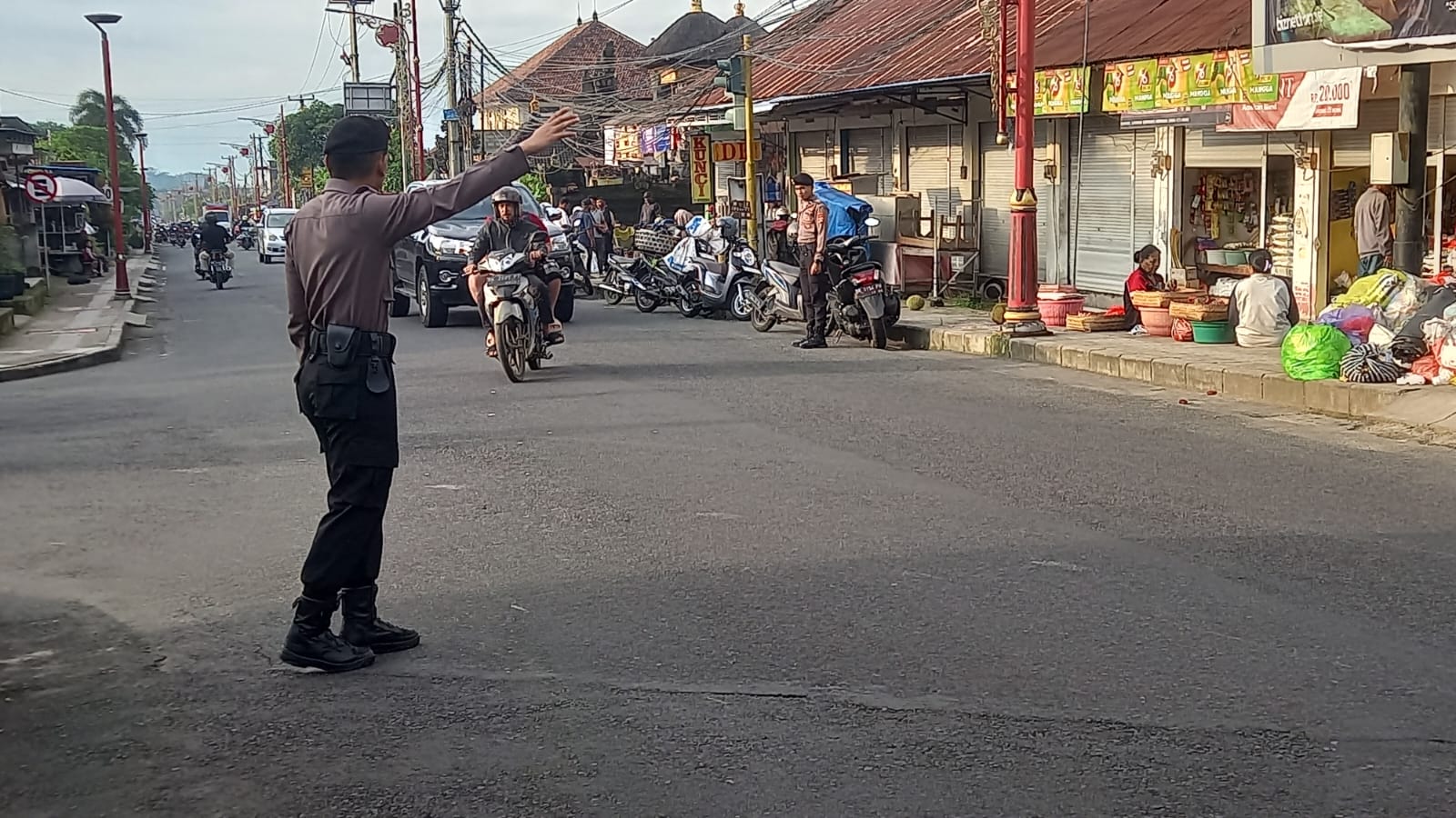 Jaga Situasi Tetap Mancarli, Personil Polsek Bangli Laksanakan Pengaturan Arus Lalulintas
