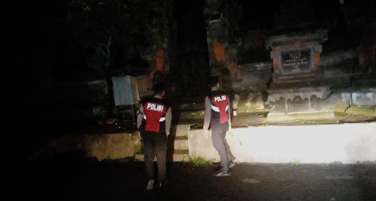 Menjaga Situasi Tetap Kondusi Pada Malam Hari, Sat Samapta Polres Bangli Sambangi Tempat Suci Pura Di Pura Penatraan Er, Malet , Bangli.