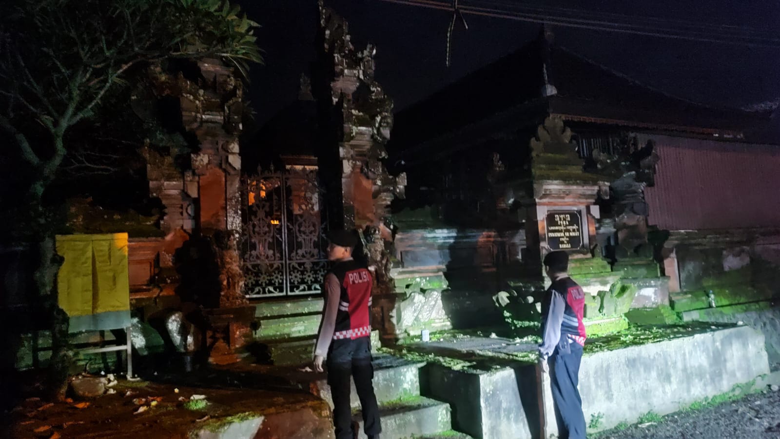 Menjaga Situasi Tetap Kondusi Pada Malam Hari, Sat Samapta Polres Bangli Sambangi Tempat Suci Pura Di Pura Penatraan Er, Malet , Bangli.