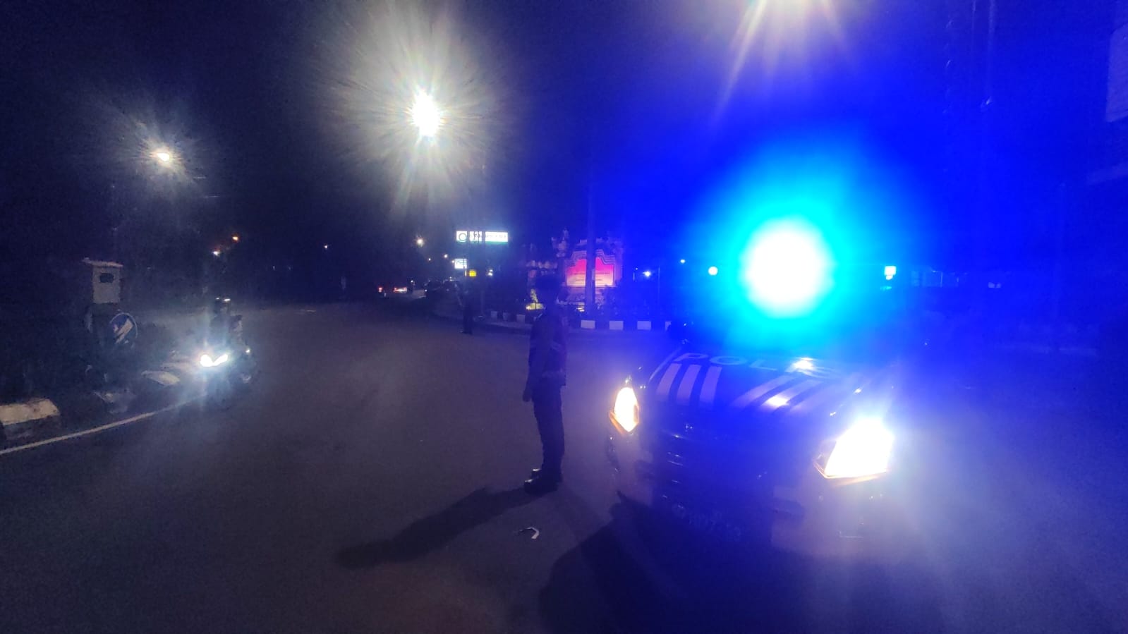 Sat Samapta Laksanakan Gatur dan Pergelaran Blue Light Randis R4 di Pusat Keramaian Malam Di Kota Bangli Demi Kenyamanan Dan Kelancaran Arus Lalu lintas Pada Malam