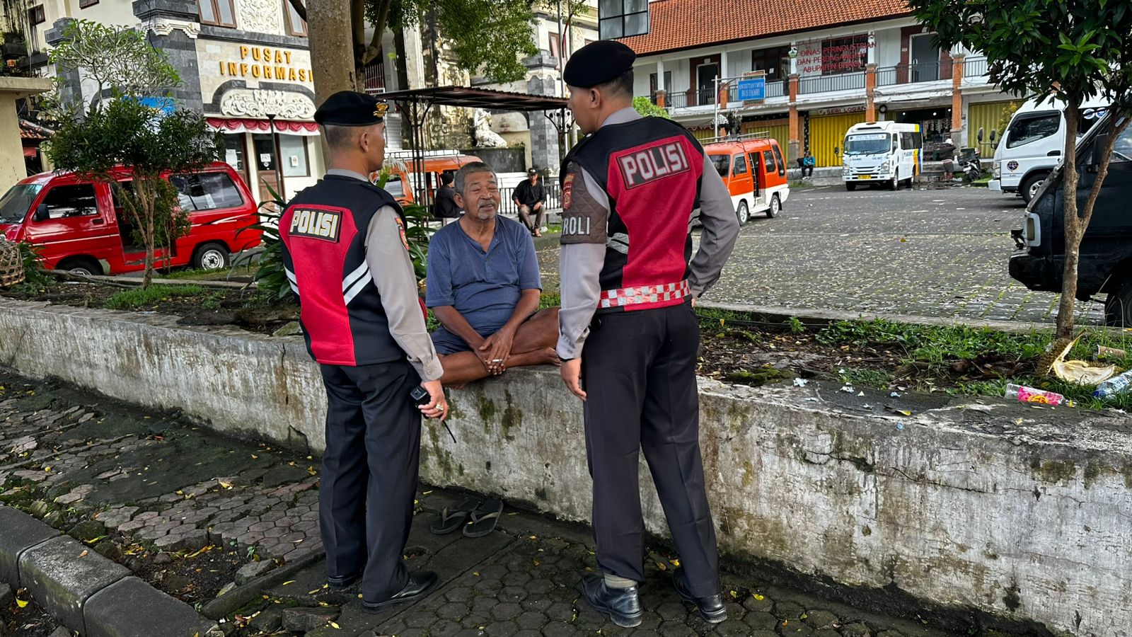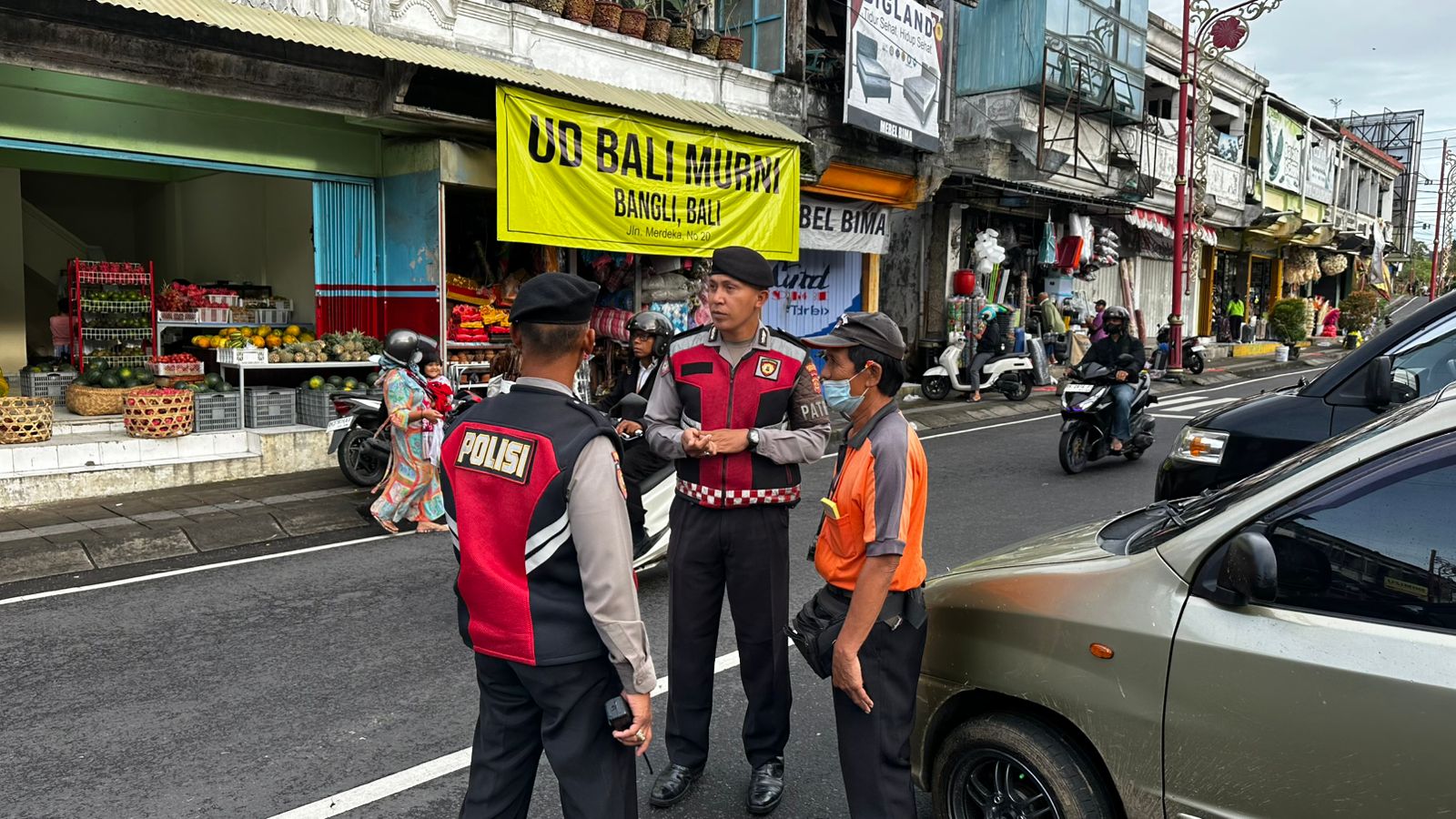 PERKECIL RUANG GERAK AKSI CURANMOR DIWILKUM BANGLI PERSONIL SAMAPTA POLRES BANGLI SAMBANGI TUKANG PARKIR