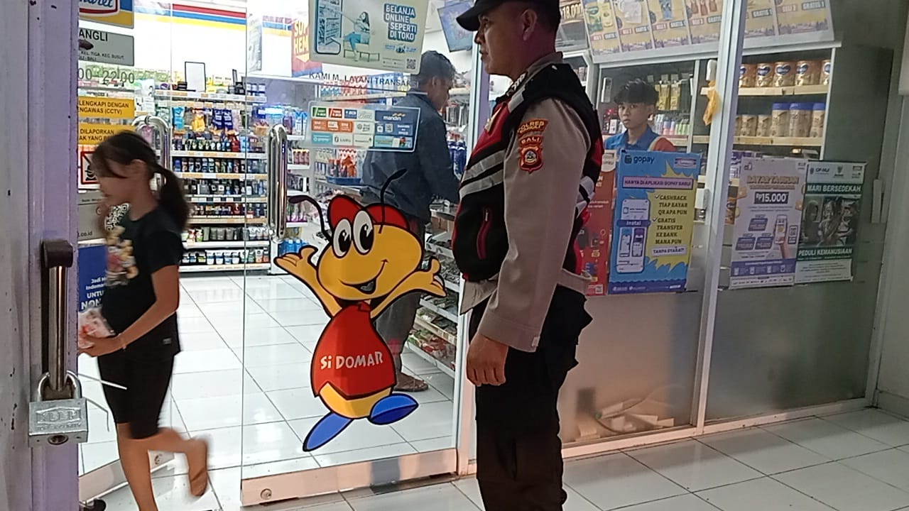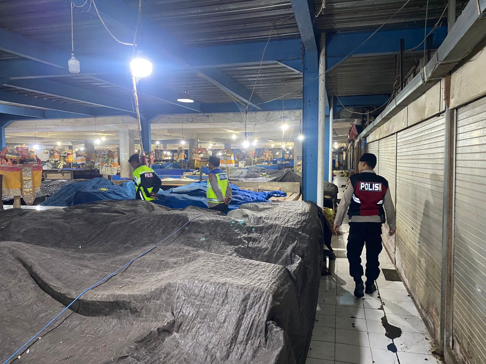 Antisipasi Gangguan Kamtibmas Pada Malam Hari, Personil Samapta Polres Bangli Lakukan Patroli Malam di Areal Pertokoan Pasar Kidul Bangli.