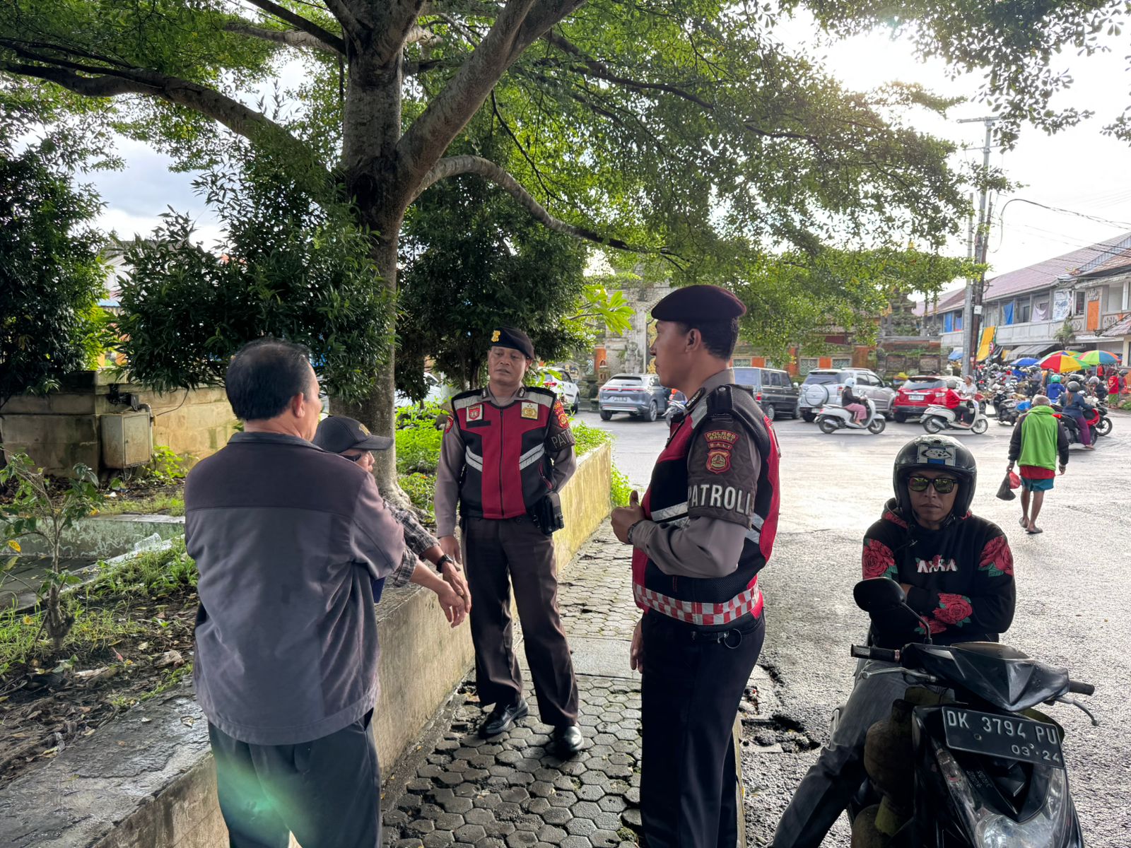 PERKECIL RUANG GERAK AKSI CURANMOR DIWILKUM BANGLI PERSONIL SAMAPTA POLRES BANGLI SAMBANGI TUKANG PARKIR