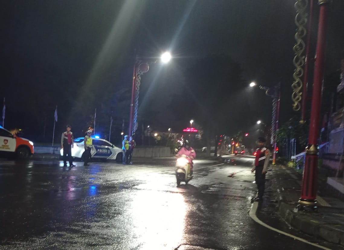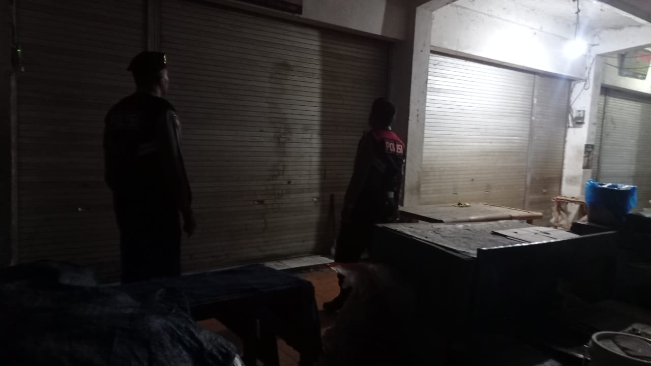 Antisipasi Gangguan Kamtibmas Pada Malam Hari, Personil Samapta Polres Bangli Lakukan Patroli Malam di Areal Pertokoan Pasar Kidul Bangli.