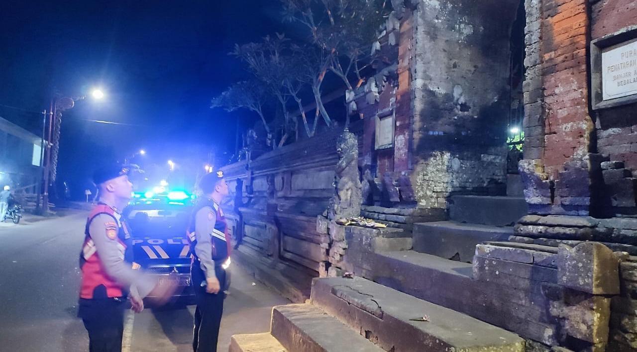 Menjaga Situasi Tetap Kondusi Pada Malam Hari, Sat Samapta Polres Bangli Sambangi Tempat Suci Pura Dalem Penunggekan, Blumbang, Bangli