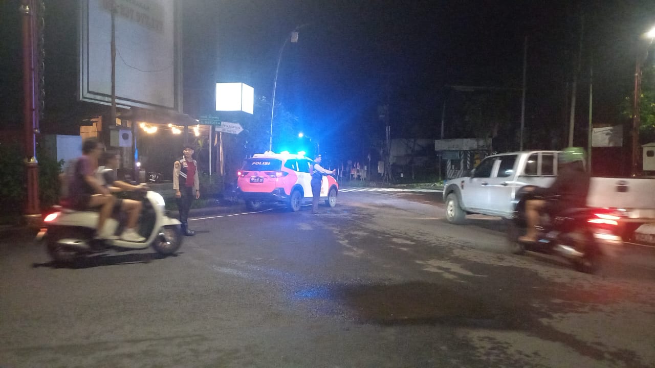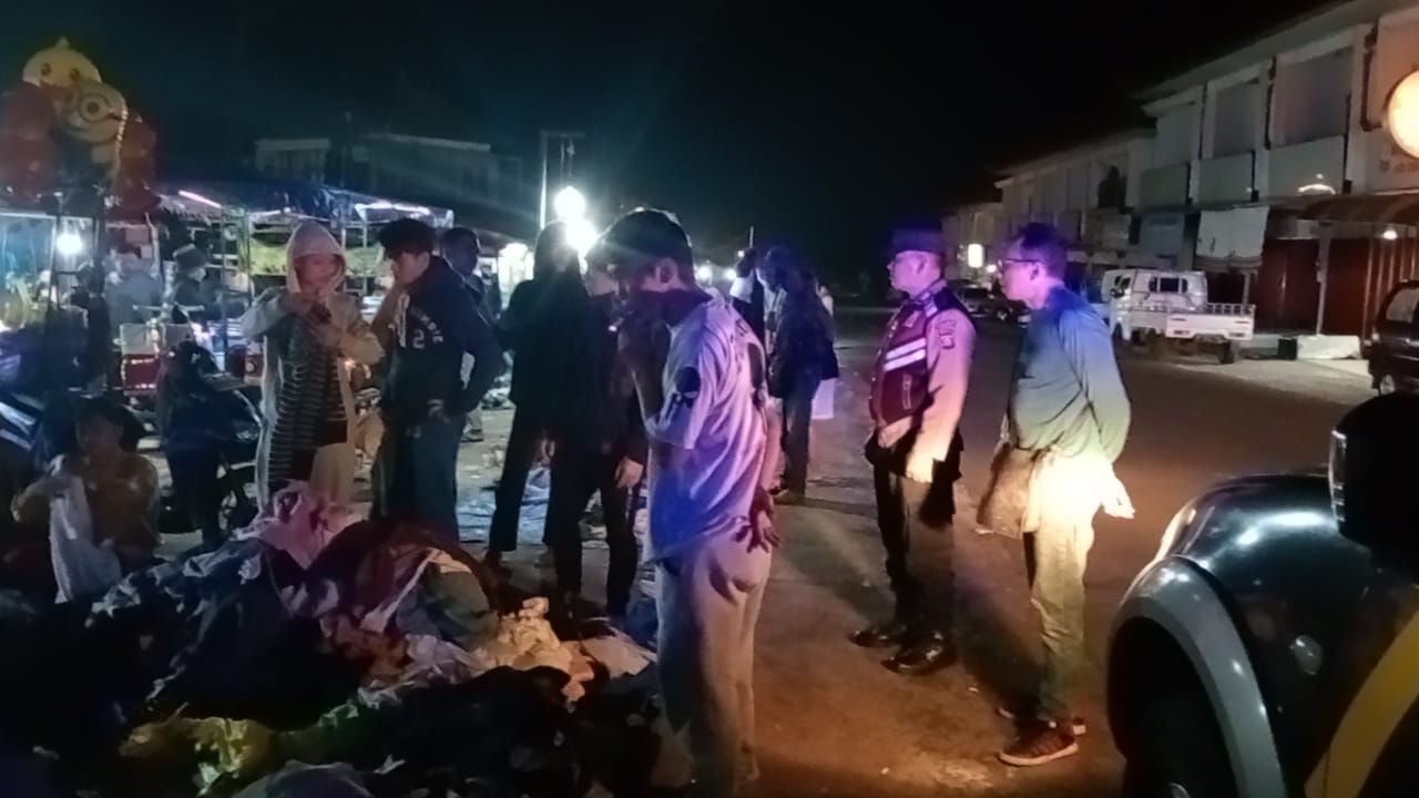 Antisipasi Gangguan Kamtibmas Pada Malam Hari, Personil Samapta Polres Bangli Lakukan Patroli Malam di Areal Pertokoan Pasar Kidul Bangli.