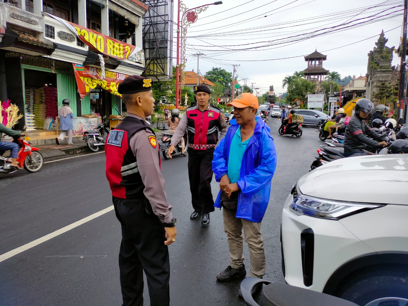 PERKECIL RUANG GERAK AKSI CURANMOR DIWILKUM BANGLI PERSONIL SAMAPTA POLRES BANGLI SAMBANGI TUKANG PARKIR