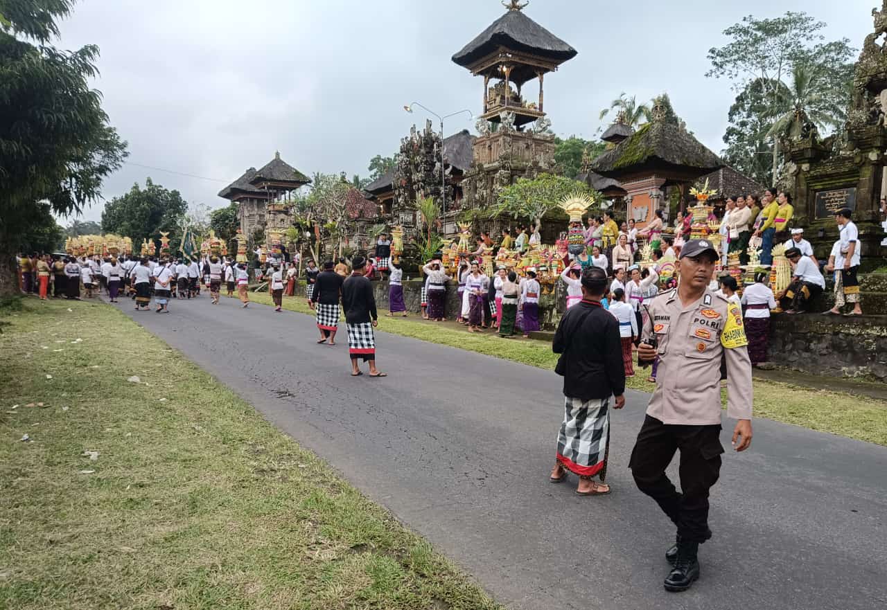 Berkalaborasi Dengan Pecalang Adat, Bhabinkamtibmas Laksanakan Pengamanan Kegiatan Upacara Mendak Tirta