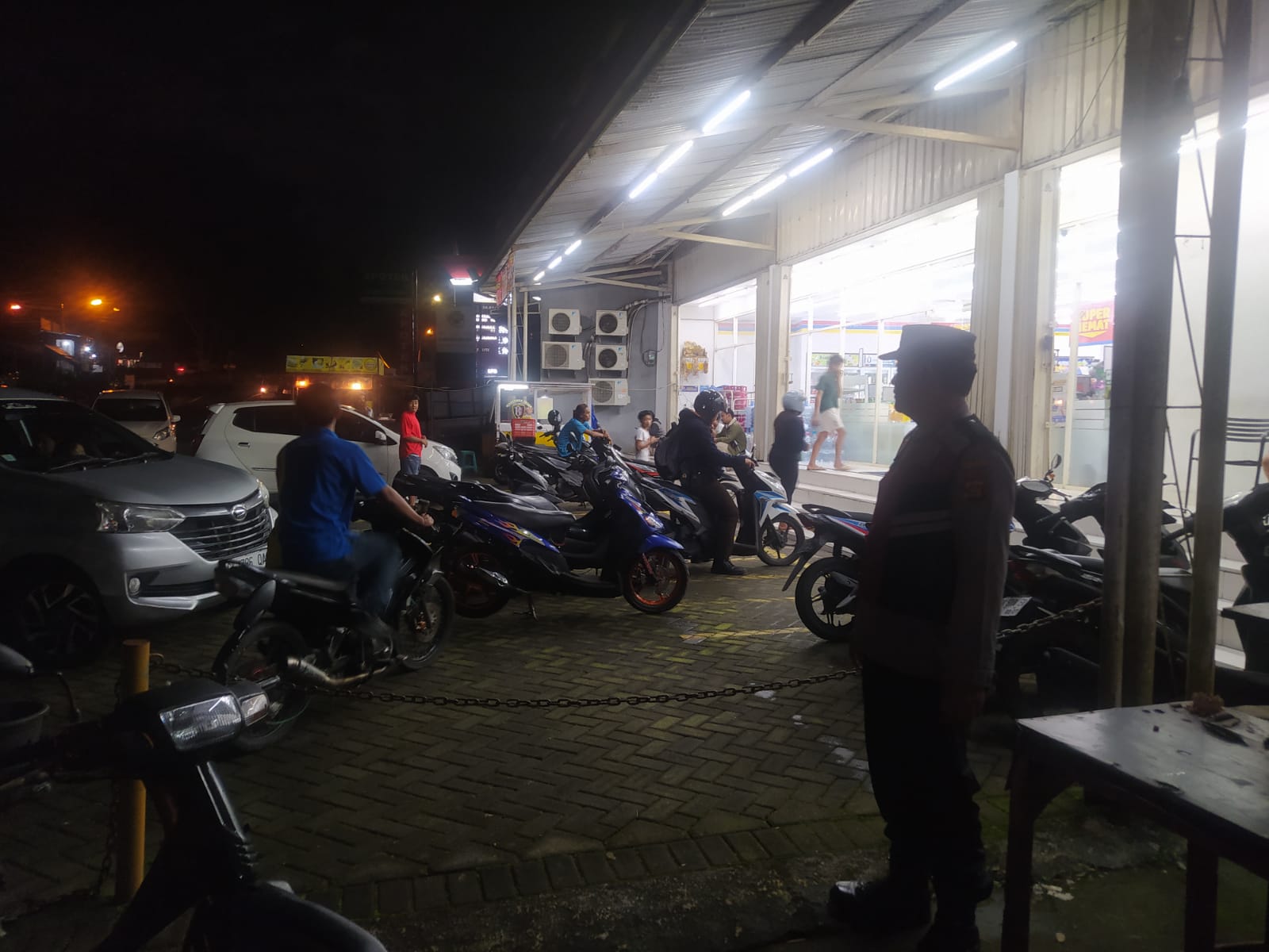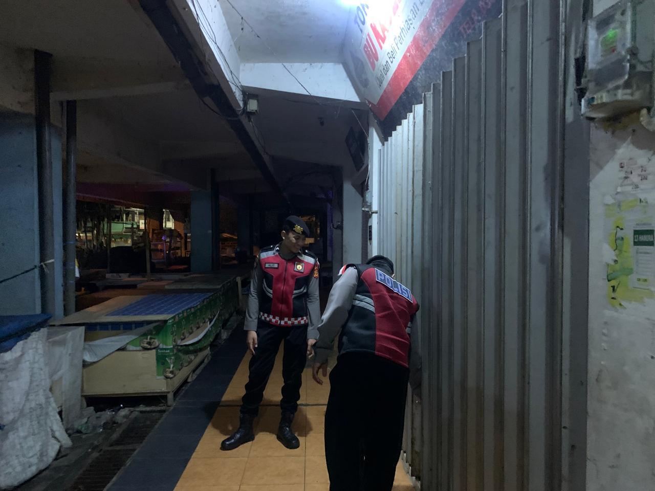 Antisipasi Gangguan Kamtibmas Pada Malam Hari, Personil Samapta Polres Bangli Lakukan Patroli Malam di Areal Pertokoan Pasar Kidul Bangli.