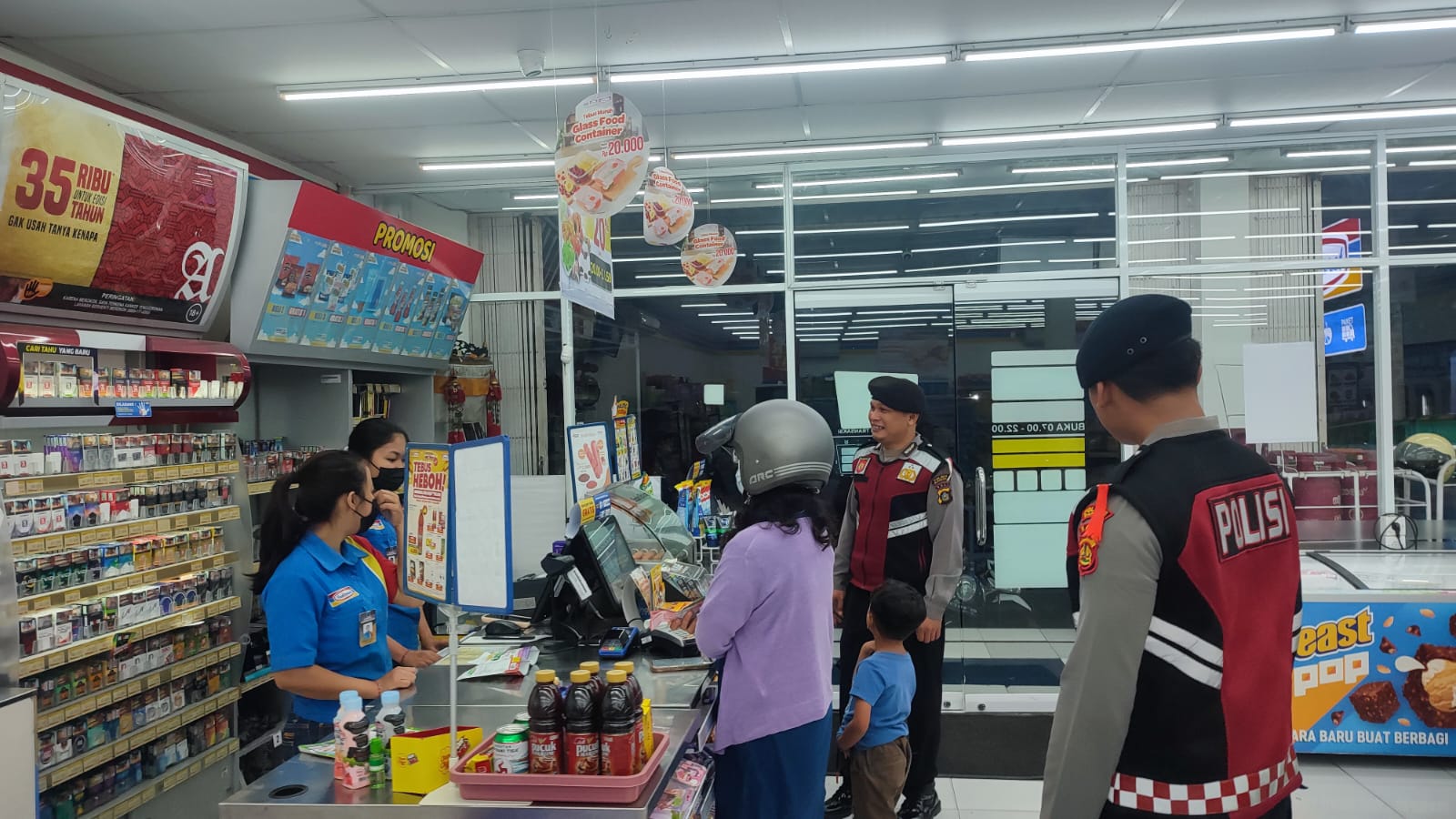 Sat Samapta Polres Bangli Secara Rutin Laksanakan Patroli Dialogis Tentang Kamtibmas Kepada Karyawan Pertokoan Modern di wilkum Polres Bangli