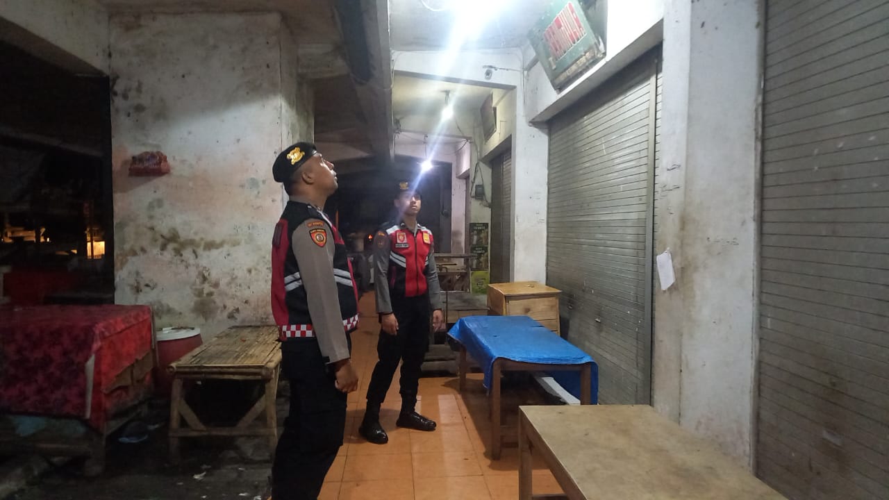 Antisipasi Gangguan Kamtibmas Pada Malam Hari, Personil Samapta Polres Bangli Lakukan Patroli Malam di Areal Pertokoan Pasar Kidul Bangli.