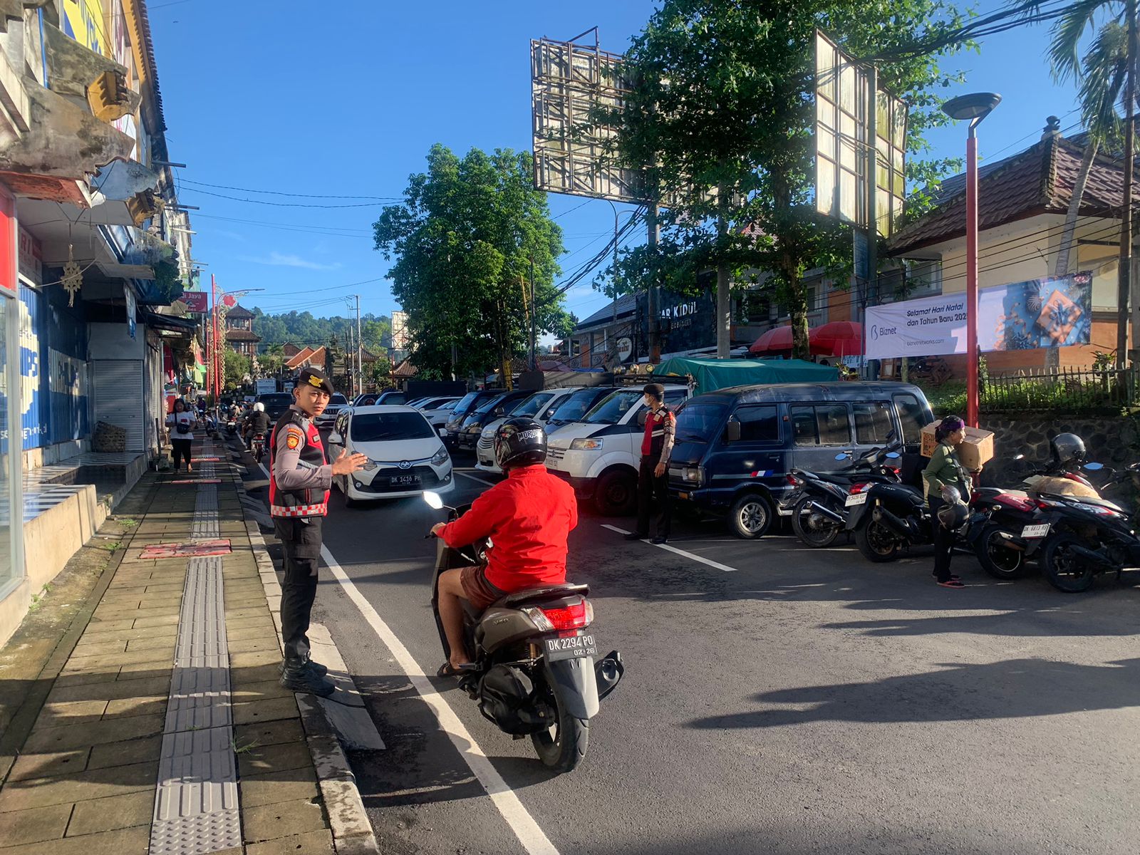PERKECIL RUANG GERAK AKSI CURANMOR DIWILKUM BANGLI PERSONIL SAMAPTA POLRES BANGLI SAMBANGI TUKANG PARKIR