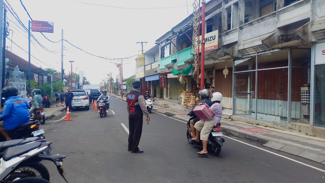 Antisipasi Kegiatan Masyarakat di Pagi Hari, Personil Polsek Bangli Laksanakan Pengaturan Lalulintas