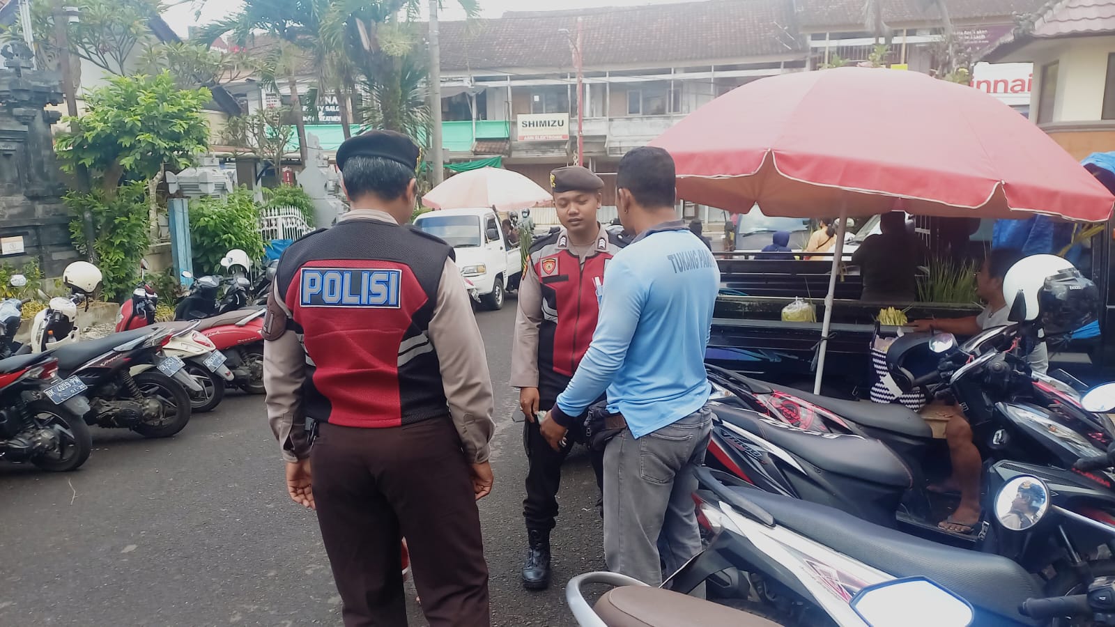 PERKECIL RUANG GERAK AKSI CURANMOR DIWILKUM BANGLI PERSONIL SAMAPTA POLRES BANGLI SAMBANGI TUKANG PARKIR