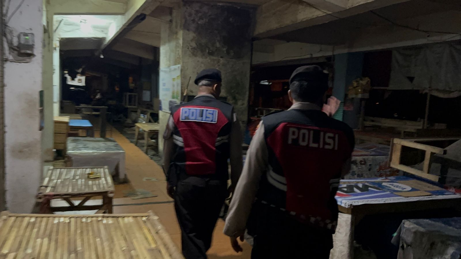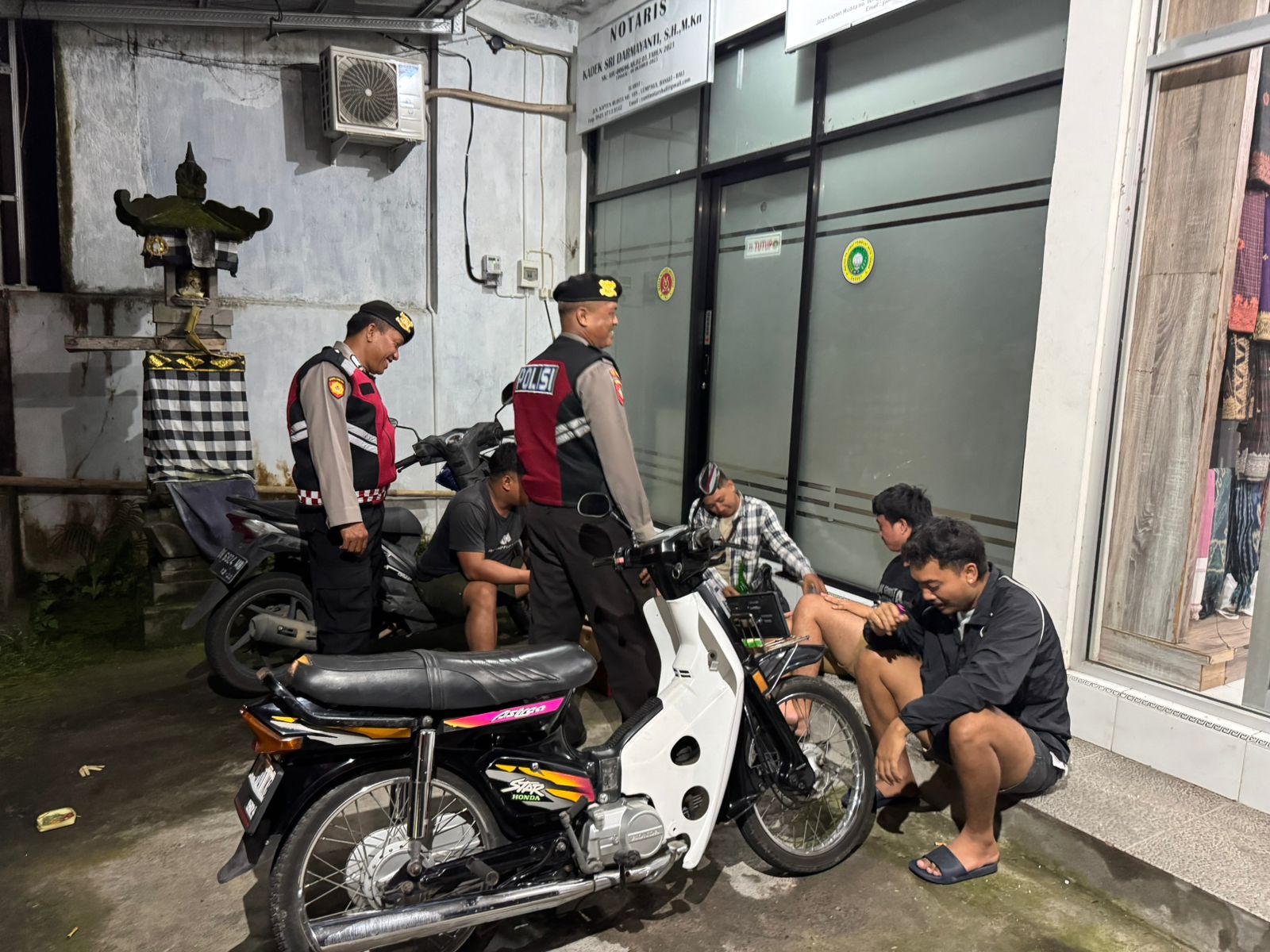 Antisipasi Gangguan Kamtibmas Pada Malam Hari, Personil Samapta Polres Bangli Lakukan Patroli Malam di Areal Pertokoan Pasar Kidul Bangli.