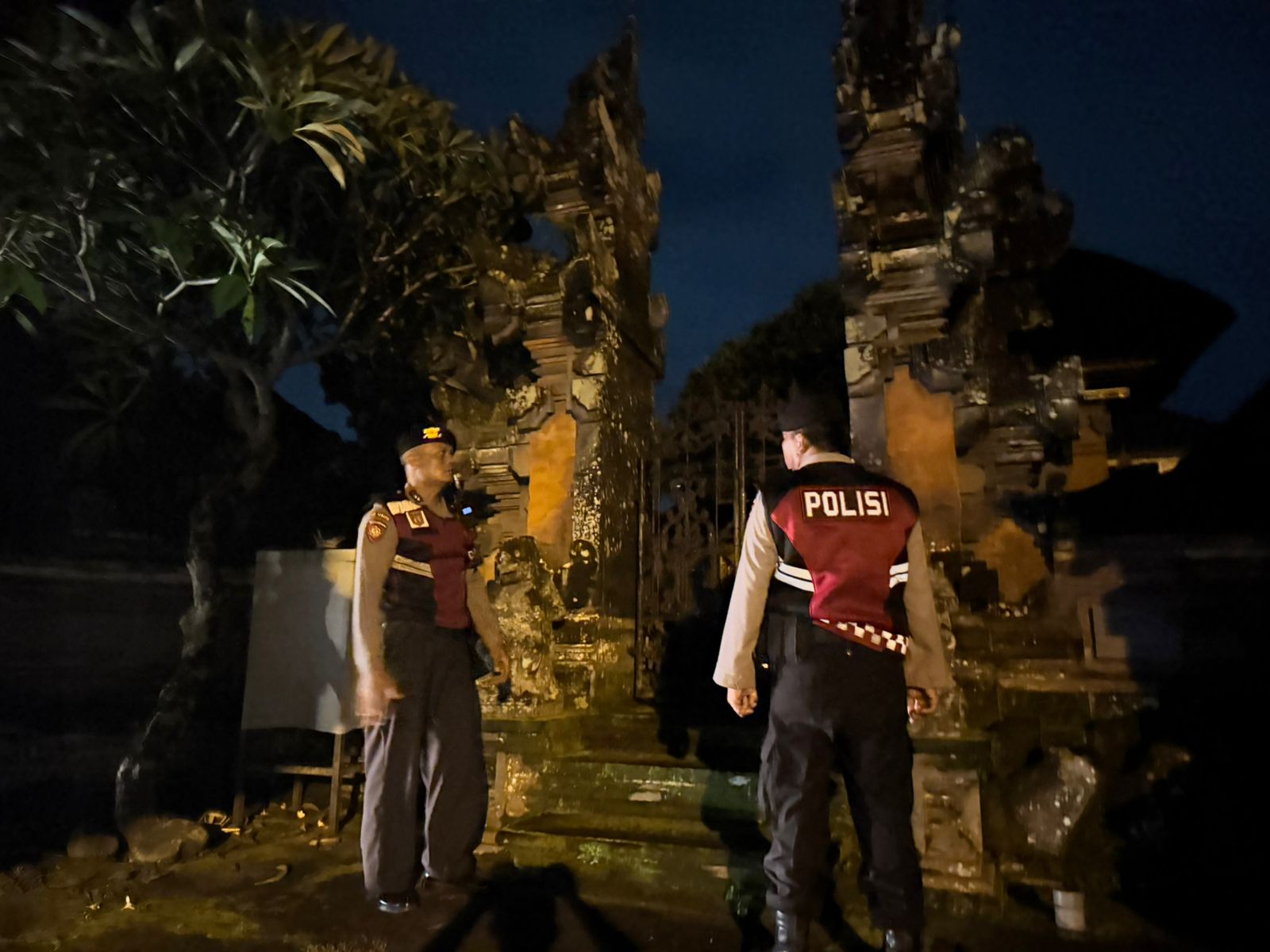 Menjaga Situasi Tetap Kondusi Pada Malam Hari, Sat Samapta Polres Bangli Sambangi Tempat Suci Pura Penataran Er Malet, Kel. Kawan, Kec. Bangli