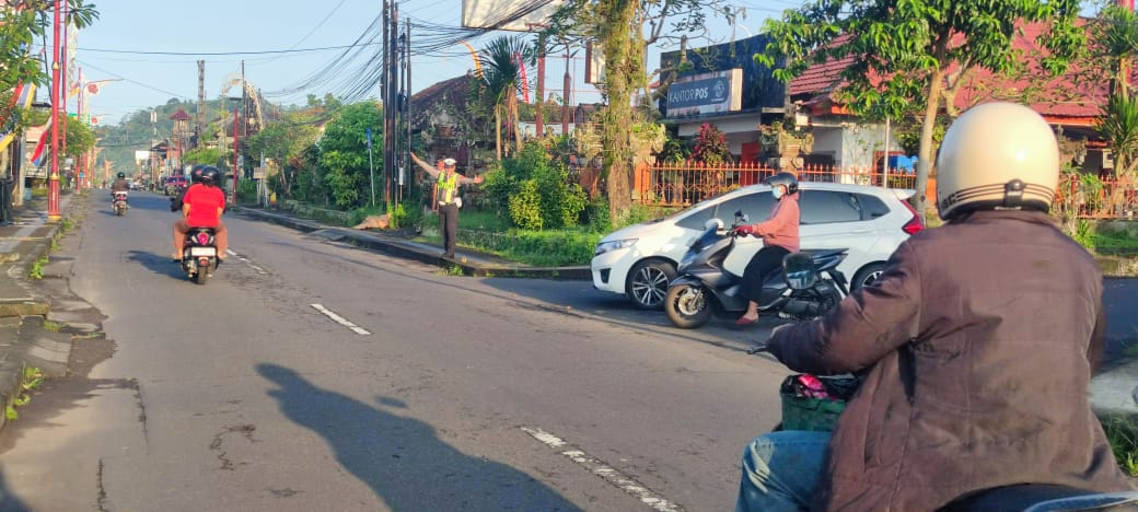 Wujud Pelayanan di Pagi Hari, Personil Polsek Bangli Laksanakan Pengaturan Arus Lalulintas