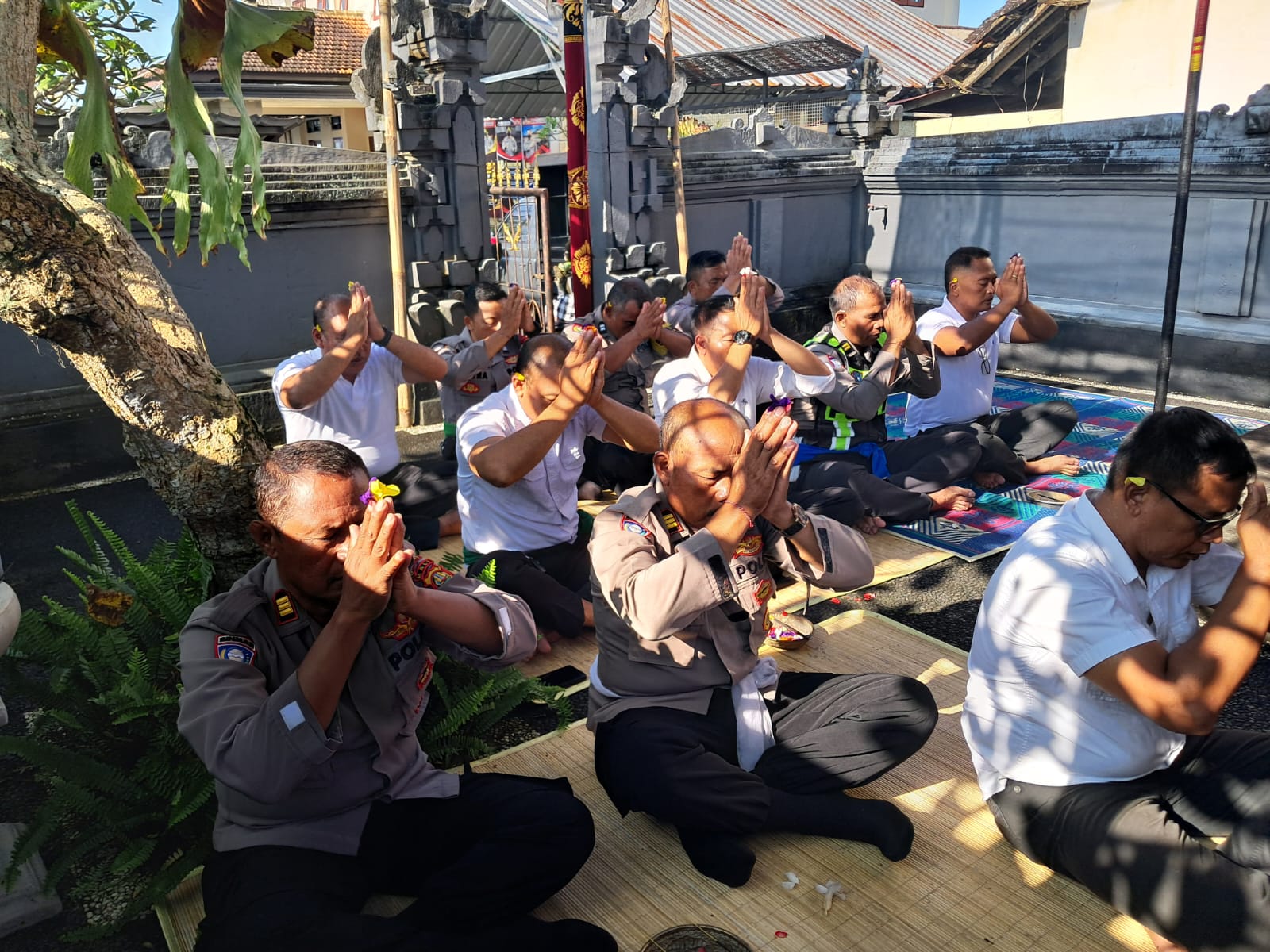 Personil Polsek Bangli Laksanakan Persembahyangan Bersama di Padmasana