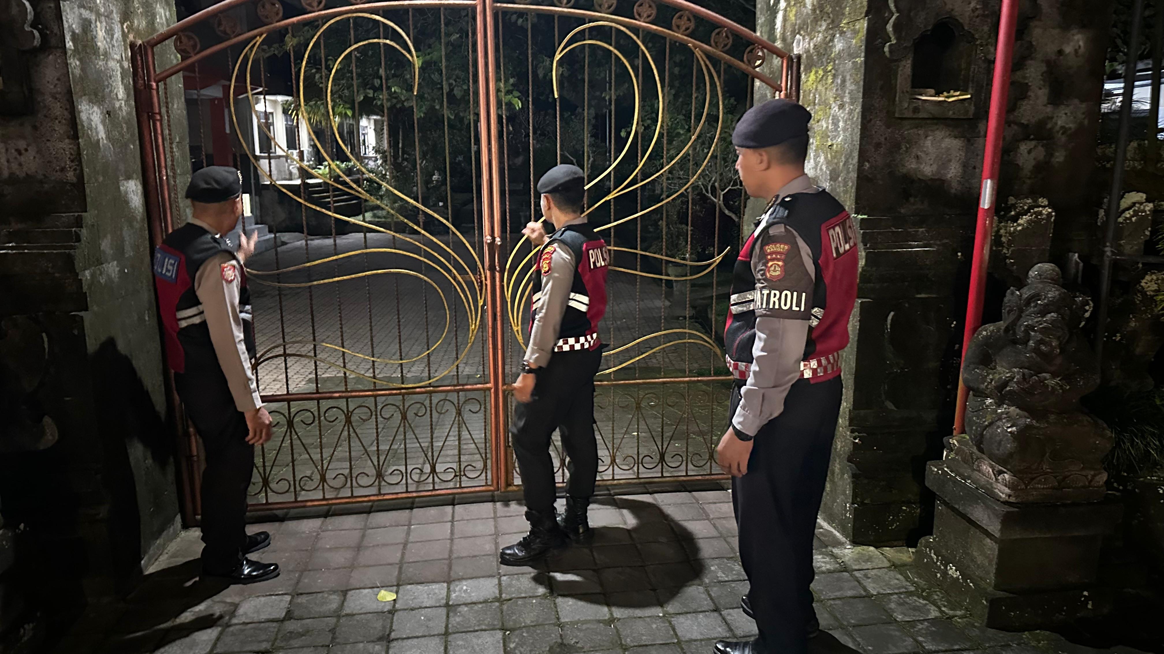 Satuan Samapta Polres Bangli Laksanakan Patroli Pada Malam Hari di SMK N 1 Bangli, Untuk Antisipasi Gangguan Kamtibmas.