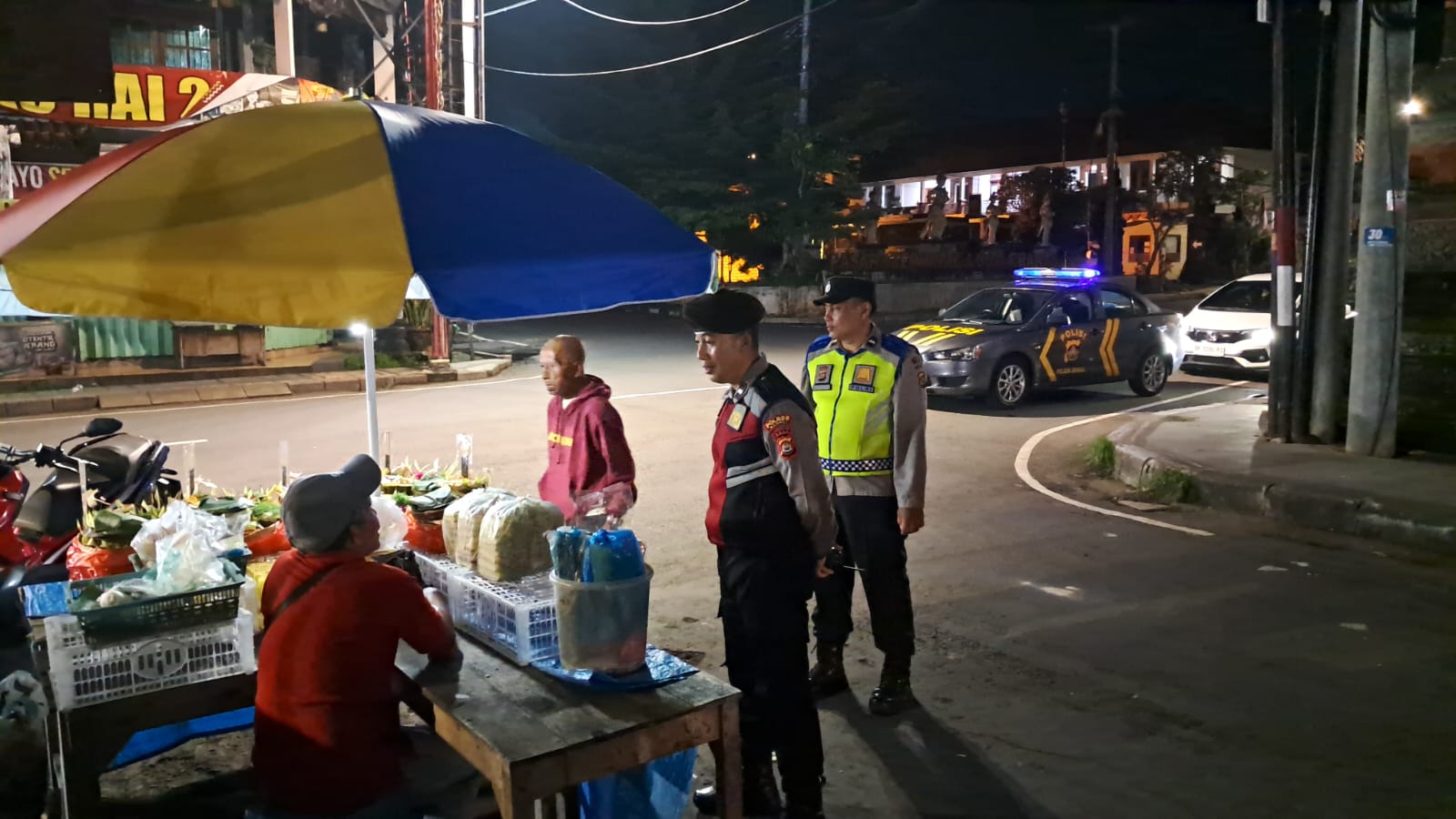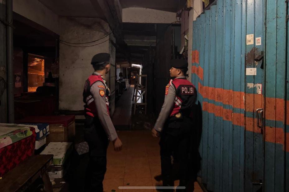Antisipasi Gangguan Kamtibmas Pada Malam Hari, Personil Samapta Polres Bangli Lakukan Patroli Malam di Areal Pertokoan Pasar Kidul Bangli.