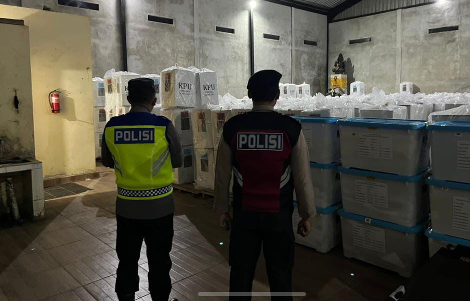 Sambangi Kantor DPRD, Kantor KPUD, Kantor Bawaslu, dan Gudang Logistik KPU Kab. Bangli personil sat samapta polres Bangli Berikan Himbauan Kamtibmas
