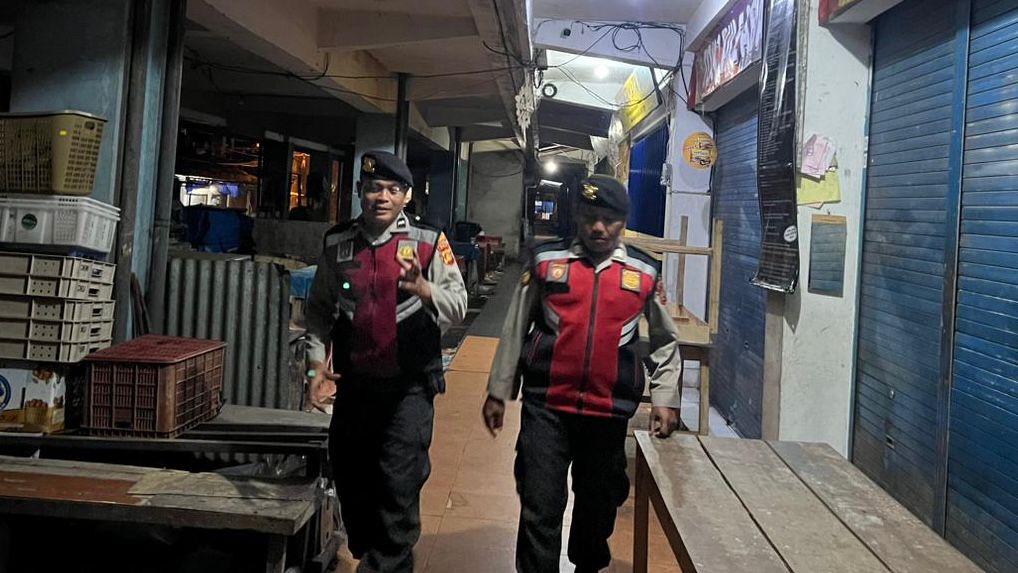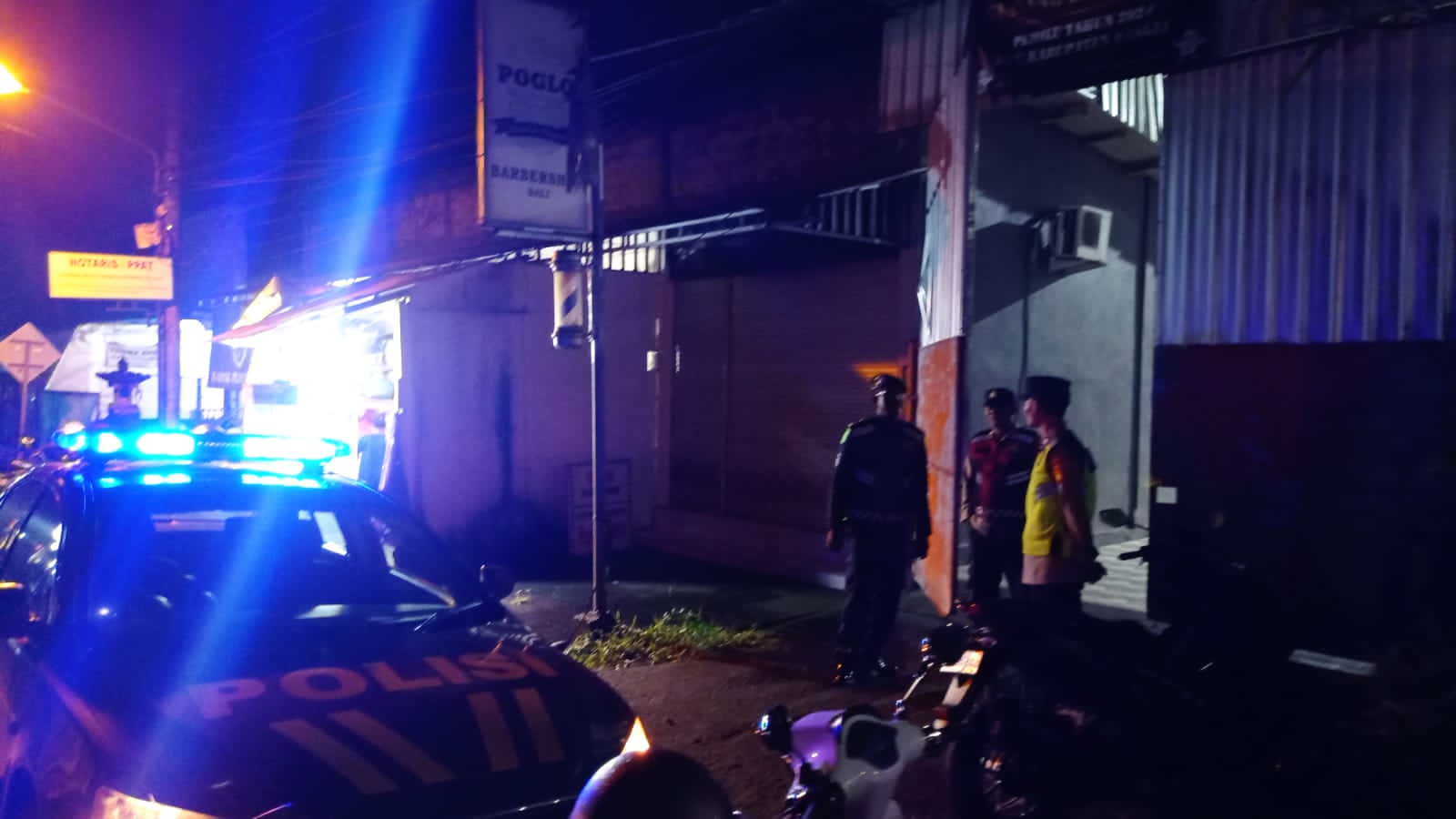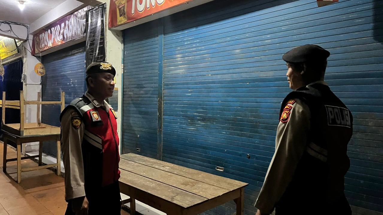 Antisipasi Gangguan Kamtibmas Pada Malam Hari, Personil Samapta Polres Bangli Lakukan Patroli Malam di Areal Pertokoan Pasar Kidul Bangli.