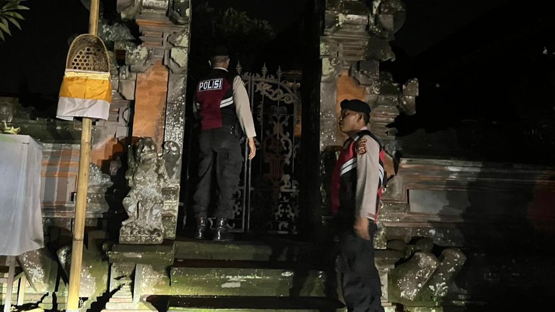Menjaga Situasi Tetap Kondusi Pada Malam Hari, Sat Samapta Polres Bangli Sambangi Tempat Suci Pura Penataran Er Malet, Kel. Kawan, Kec. Bangli
