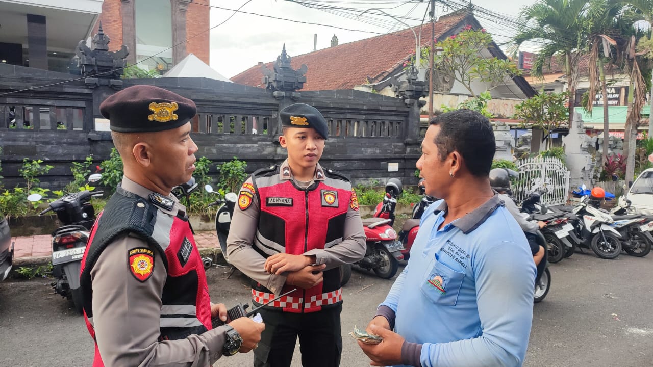 PERSONIL SAMAPTA POLRES BANGLI SAMBANGI TUKANG PARKIR PERKECIL RUANG GERAK AKSI CURANMOR DIWILKUM BANGLI