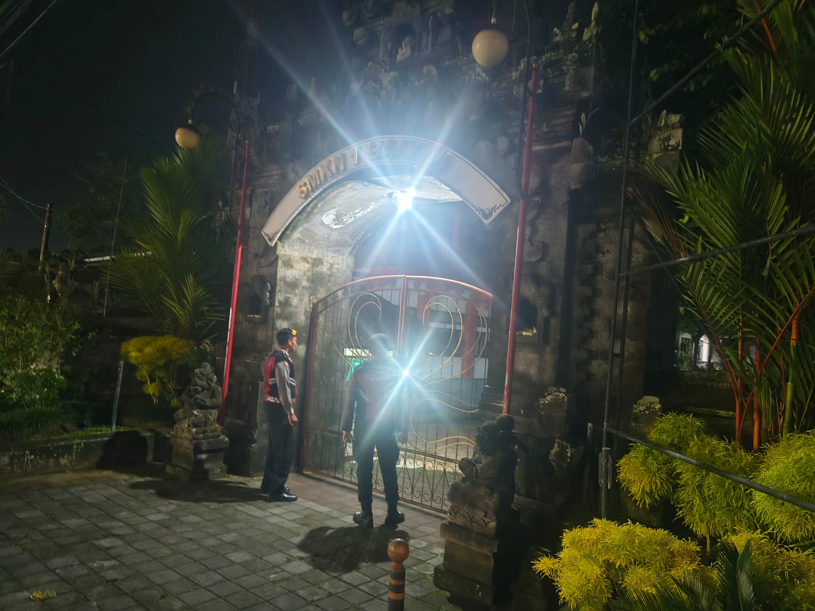 Satuan Samapta Polres Bangli Laksanakan Patroli Pada Malam Hari di SMKN 1 Bangli, Untuk Antisipasi Gangguan Kamtibmas.
