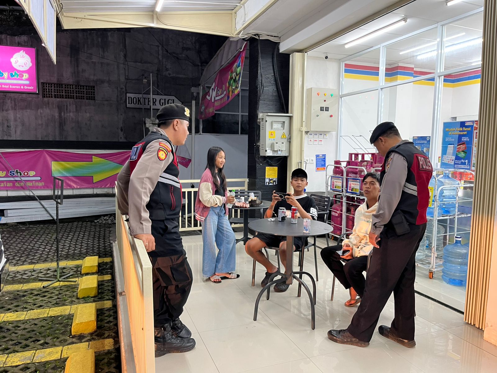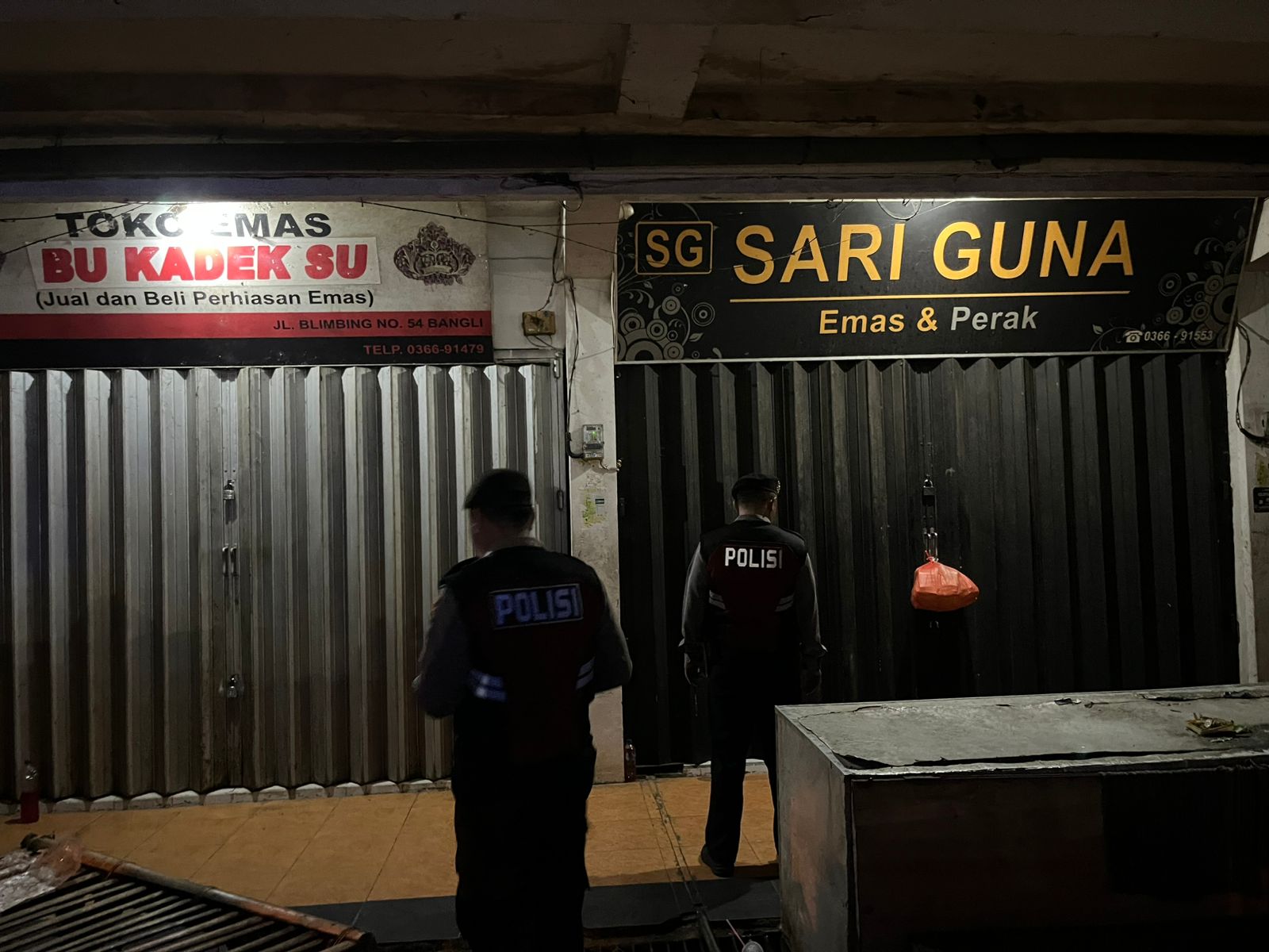 Antisipasi Gangguan Kamtibmas Pada Malam Hari, Personil Samapta Polres Bangli Lakukan Patroli Malam di Areal Pertokoan Pasar Kidul Bangli.