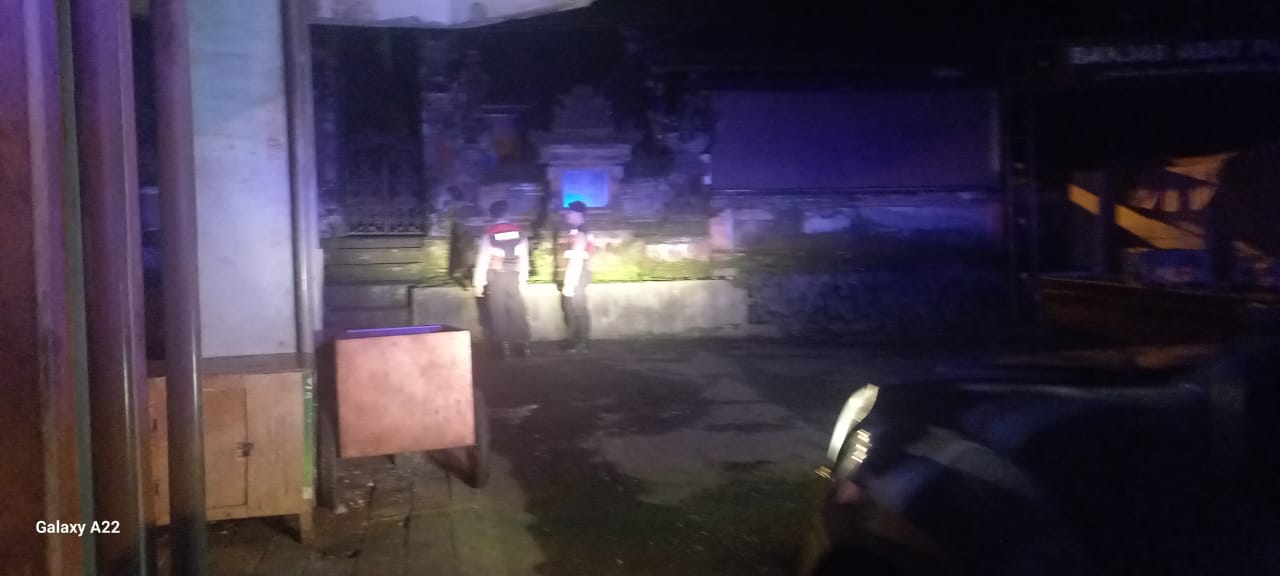 Antisipasi Gangguan Kamtibmas Pada Malam Hari, Personil Samapta Polres Bangli Lakukan Patroli Malam di Areal Pertokoan Pasar Kidul Bangli.