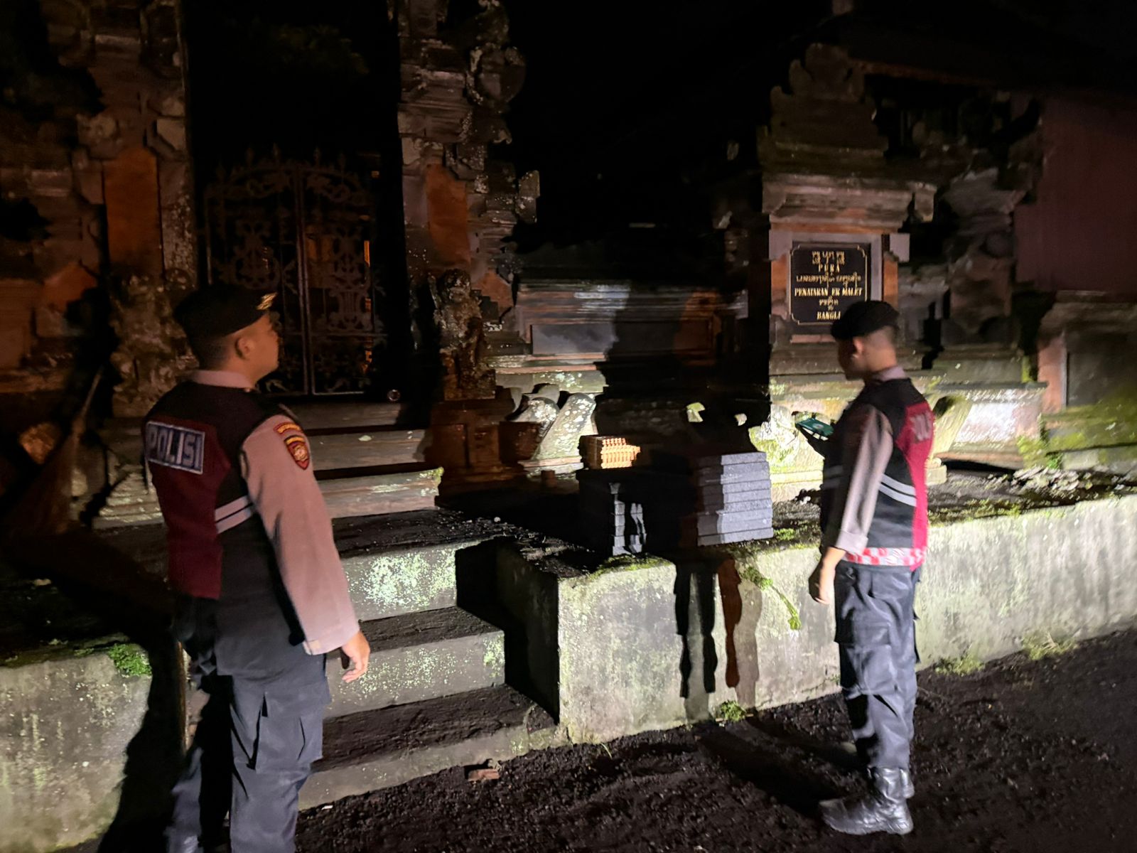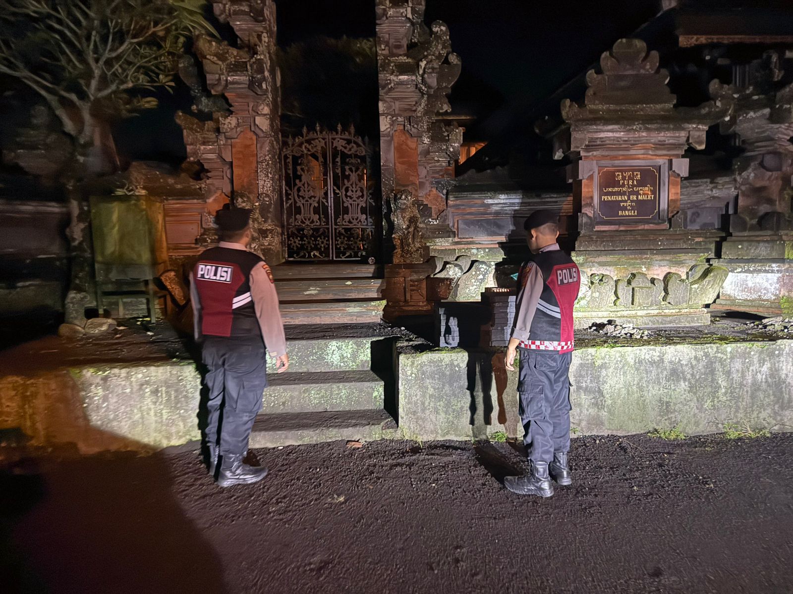 Menjaga Situasi Tetap Kondusi Pada Malam Hari,Sat Samapta Polres Bangli Sambangi Tempat Suci Pura Penataran Er Malet ,Br Pule, Bangli
