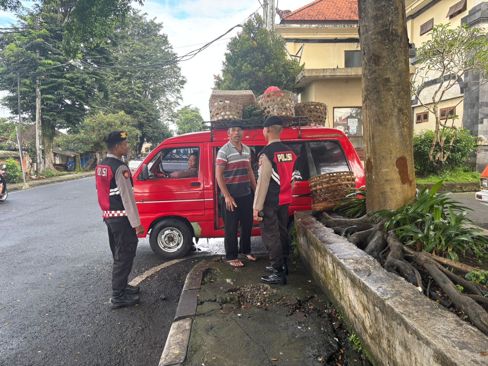 PERKECIL RUANG GERAK AKSI CURANMOR DIWILKUM BANGLI PERSONIL SAMAPTA POLRES BANGLI SAMBANGI TUKANG PARKIR