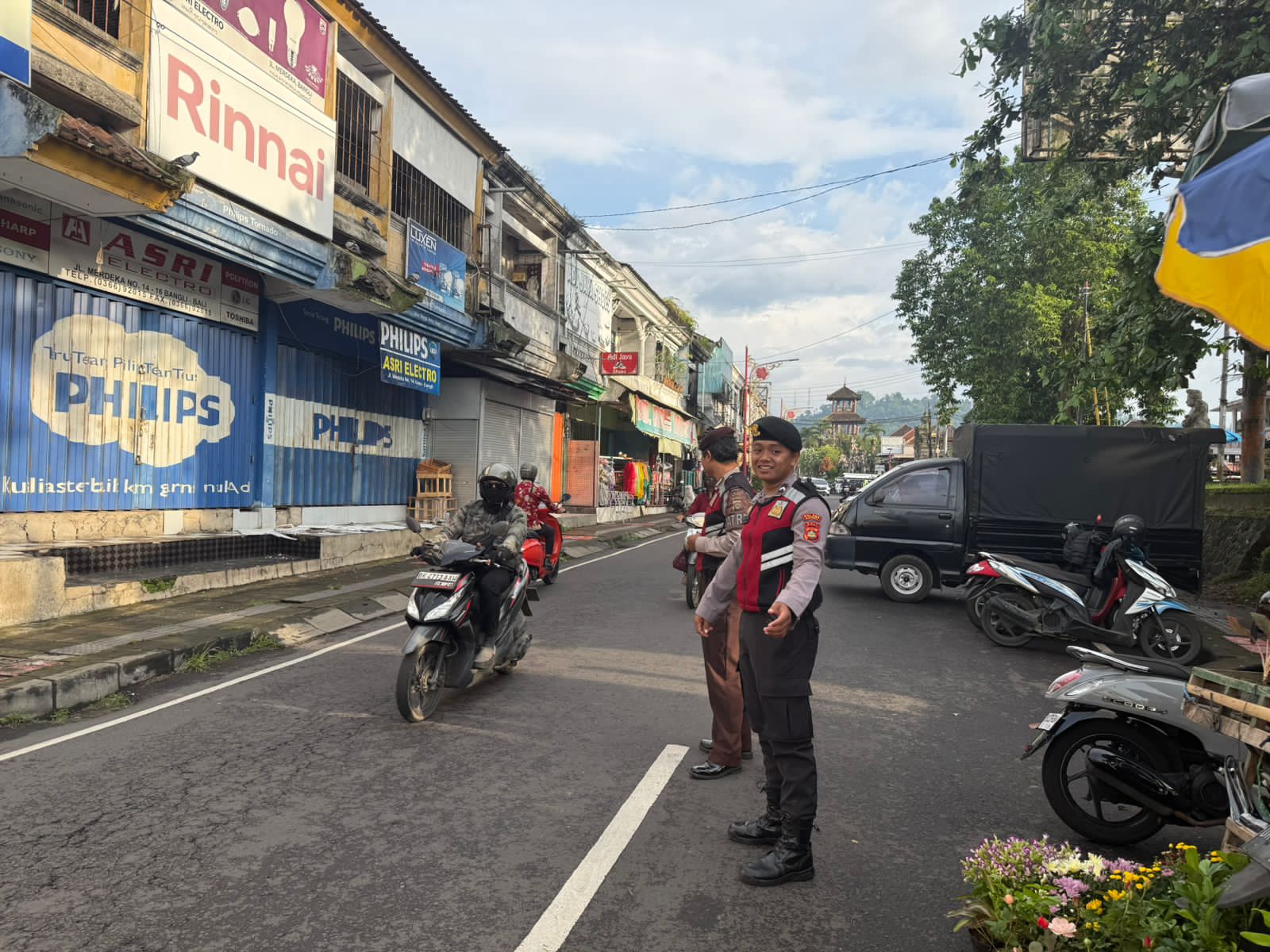 Personil Polsek Bangli Laksanakan Pengaturan Arus Lalulintas, Antisipasi Kegiatan Masyarakat di Pagi Hari