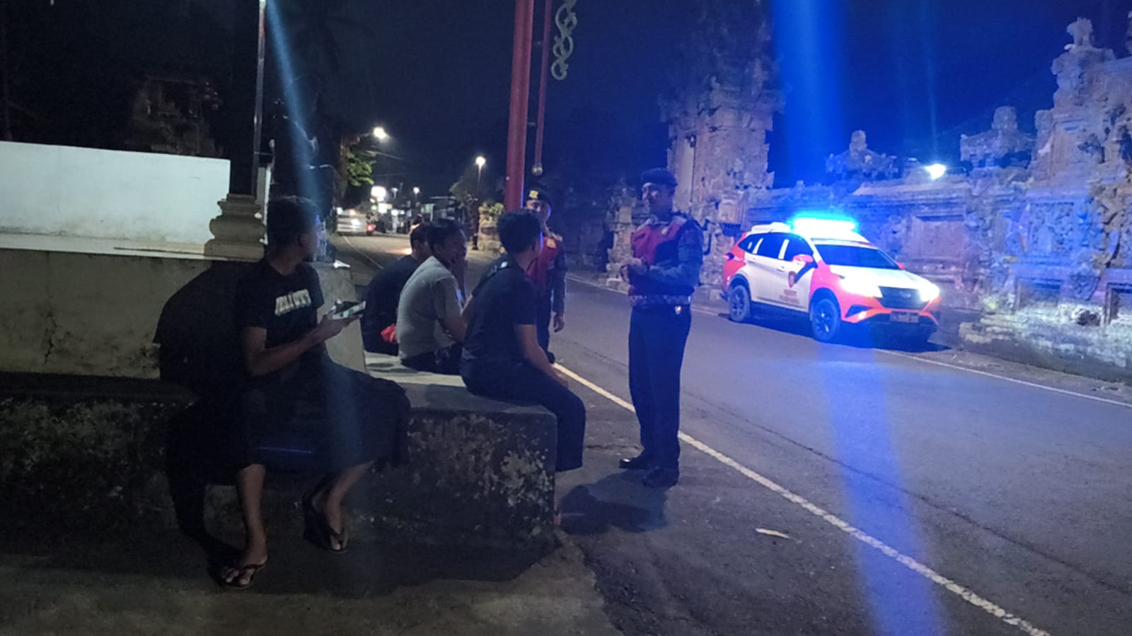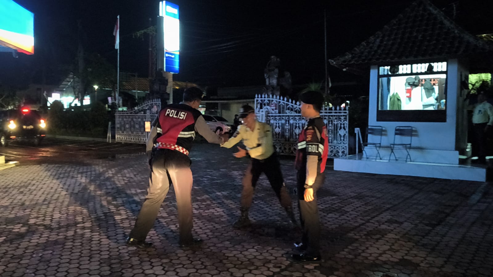 Antisipasi Gangguan Kamtibmas Pada Malam Hari, Personil Samapta Polres Bangli Lakukan Patroli Malam di Areal Pertokoan Pasar Kidul Bangli.