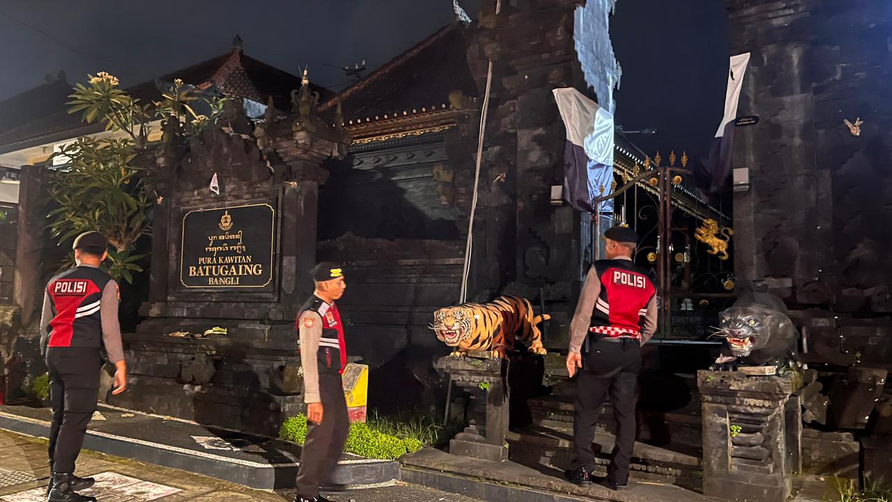 Sat Samapta Melaksanakan Patroli Dialogis Memberikan Himbauan Kamtibmas Kepada Krama Pekemitan Di Pura Dalem panungekan, Bangli.