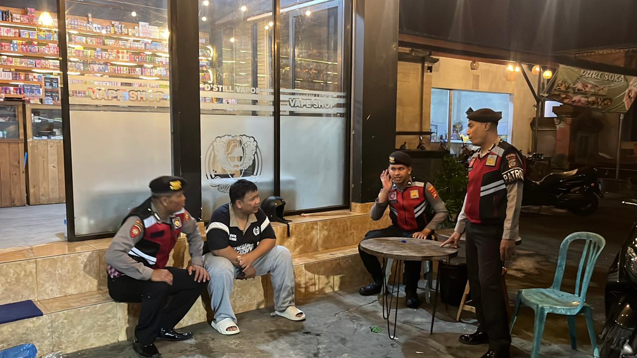 Antisipasi Gangguan Kamtibmas Pada Malam Hari, Personil Samapta Polres Bangli Lakukan Patroli Malam di Areal Pertokoan Modern Bangli.